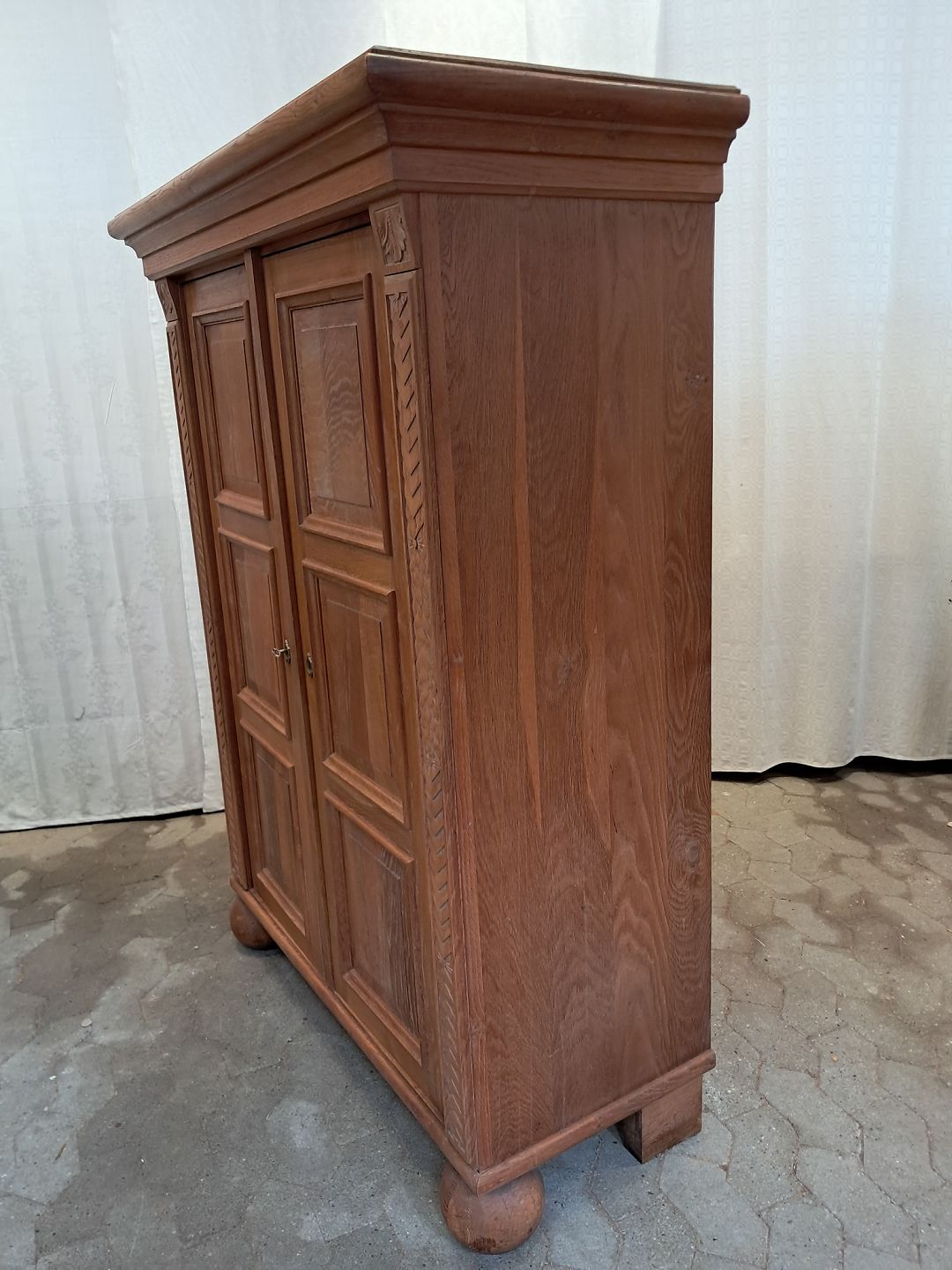 Skab i fineret egetræ, fra 1930erne.Det har brugsspor.