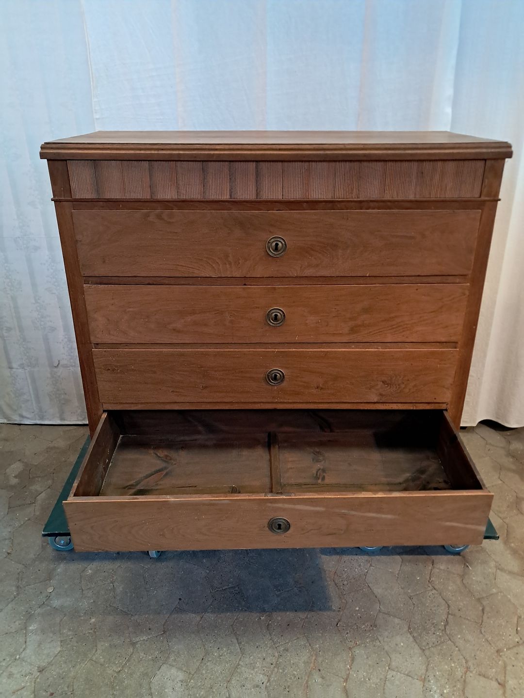 Dragkiste i massivt egetræ, fra 1900erne.Den har brugsspor.