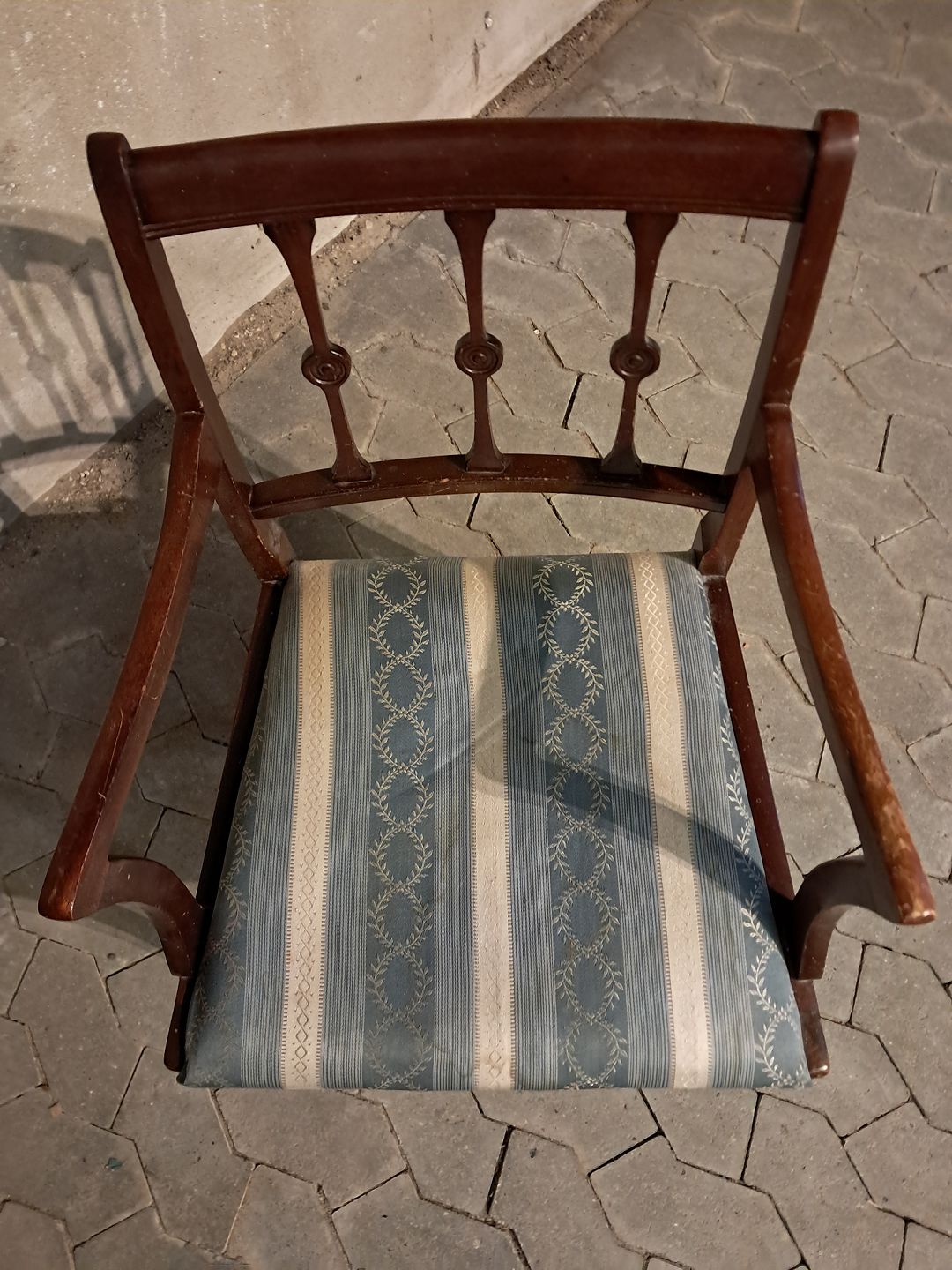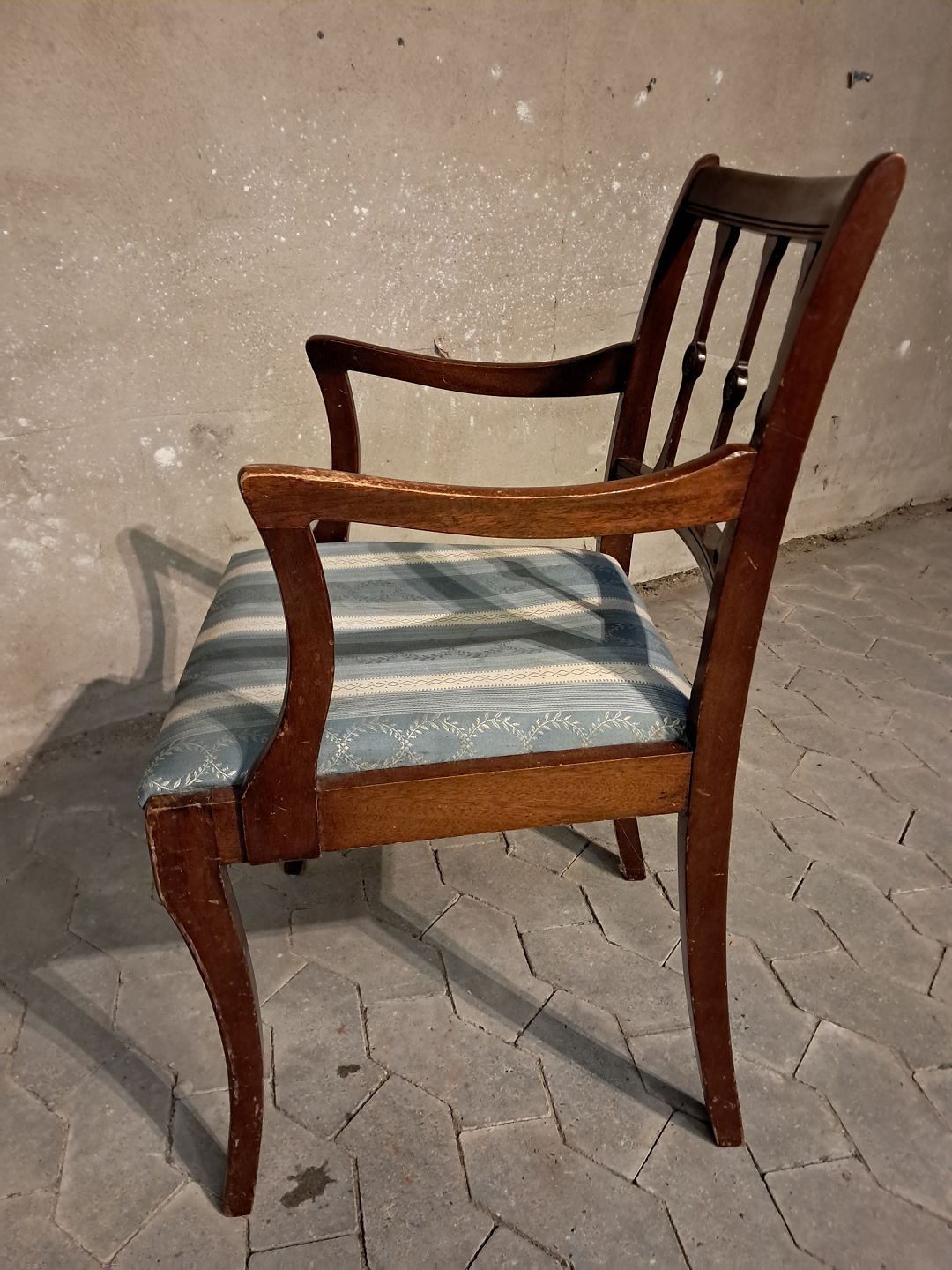 Armstol i massivt mahogni, fra 1980erne.Den har brugsspor.