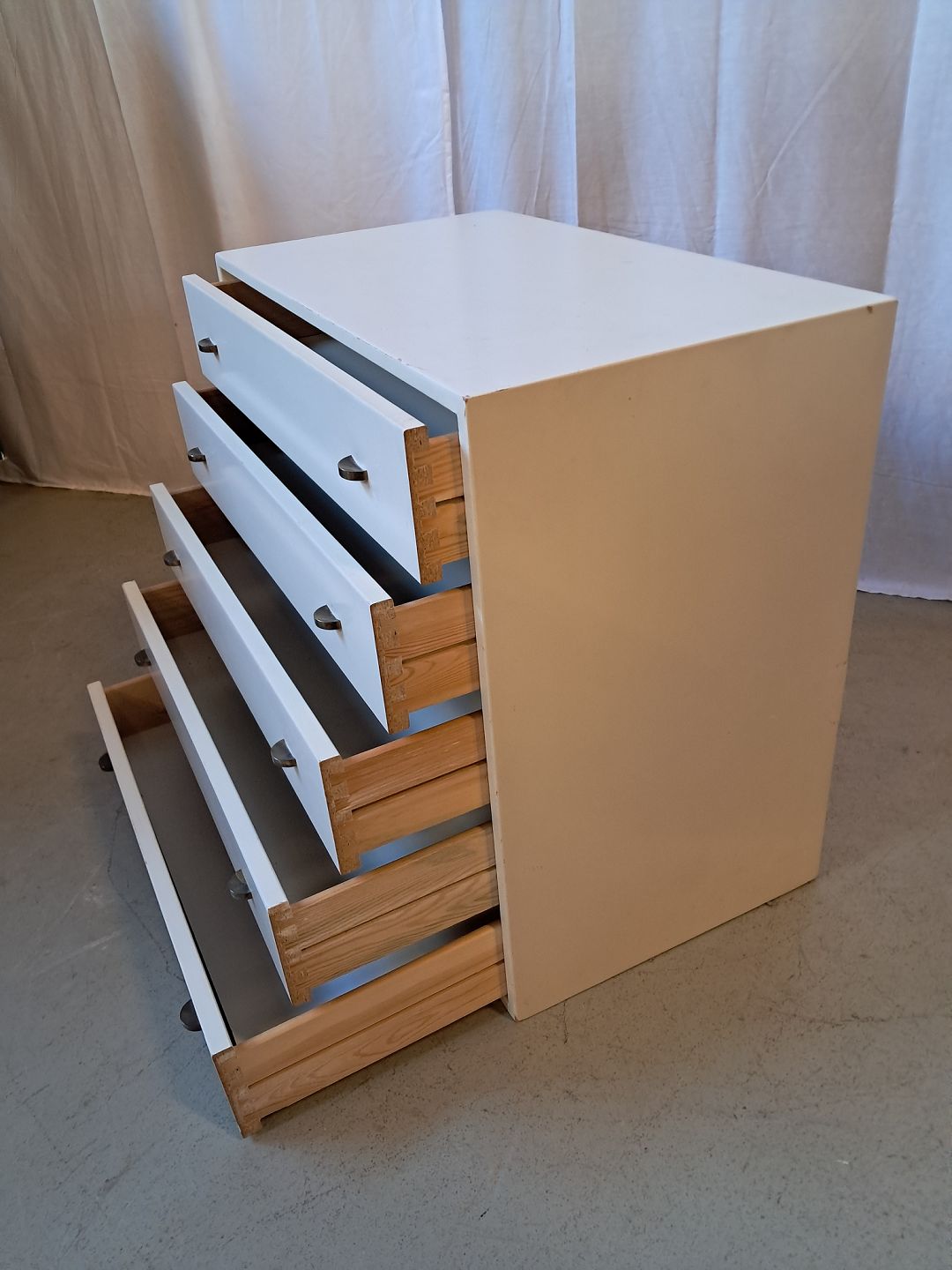 Malet kommode, fra 1980erne.Den har brugsspor og en defekt på siden.