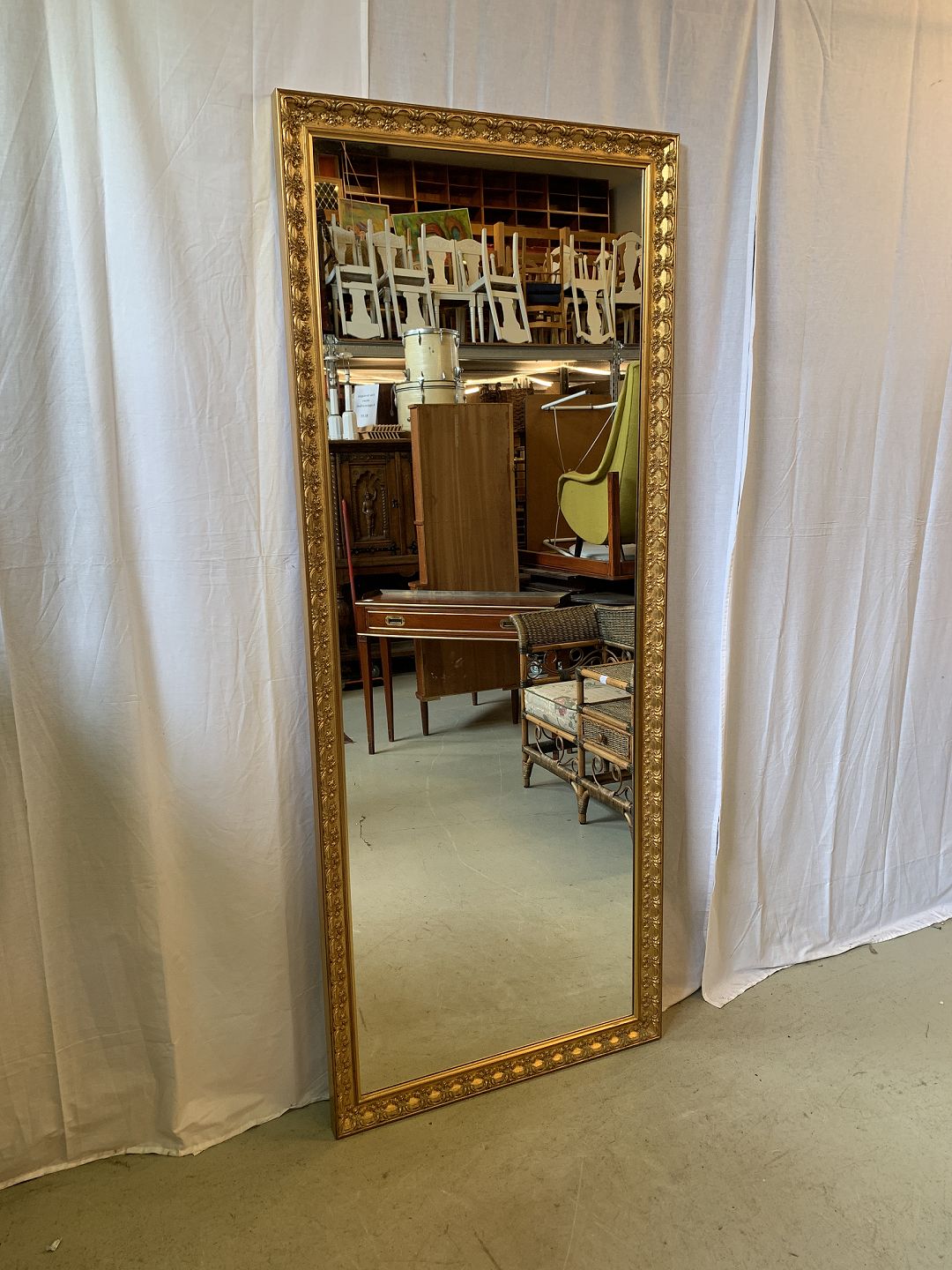 Stort spejl med guldmalet ramme, fra 2000erne.Det har små brugsspor.