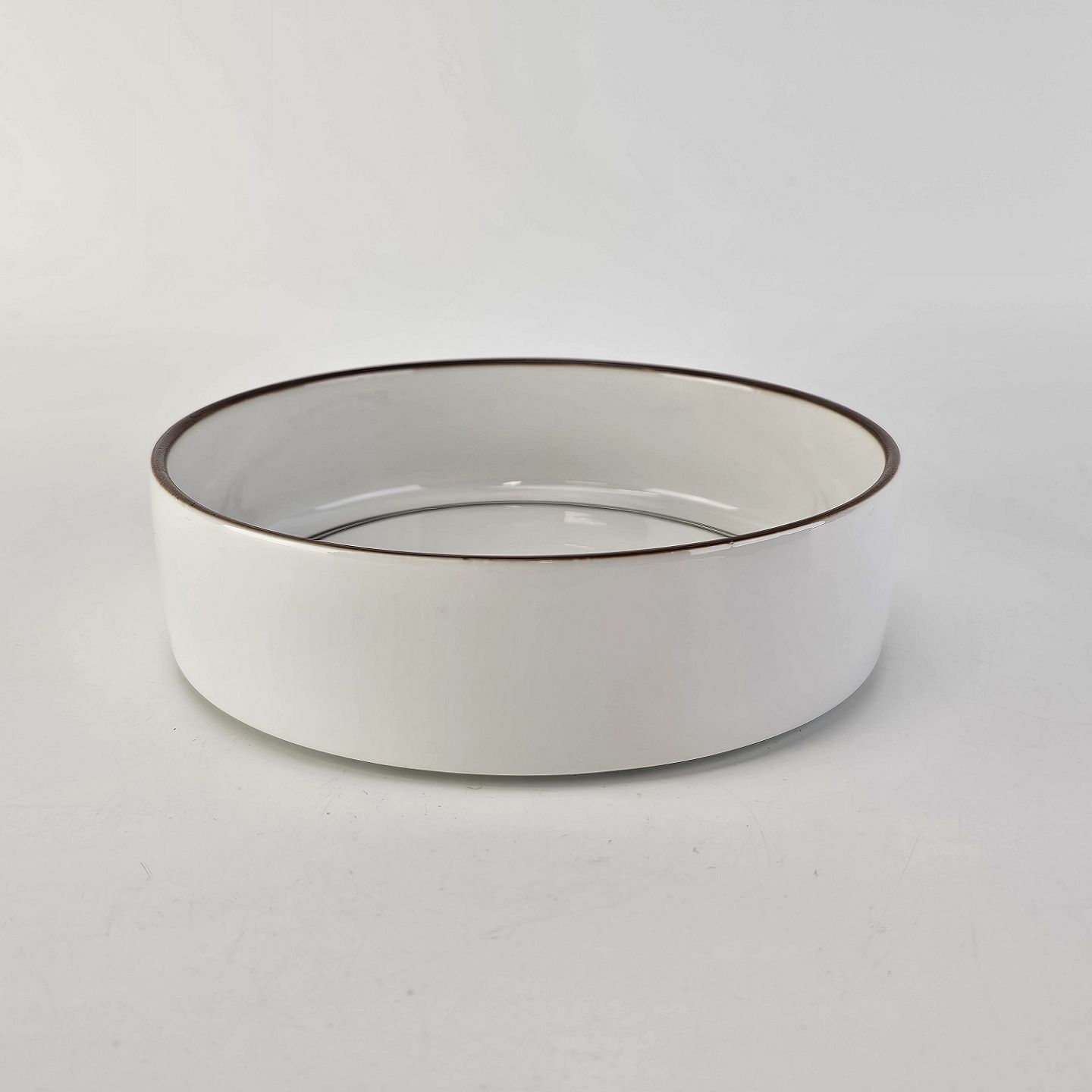 Service i glat hvidt porcelæn med brun kant