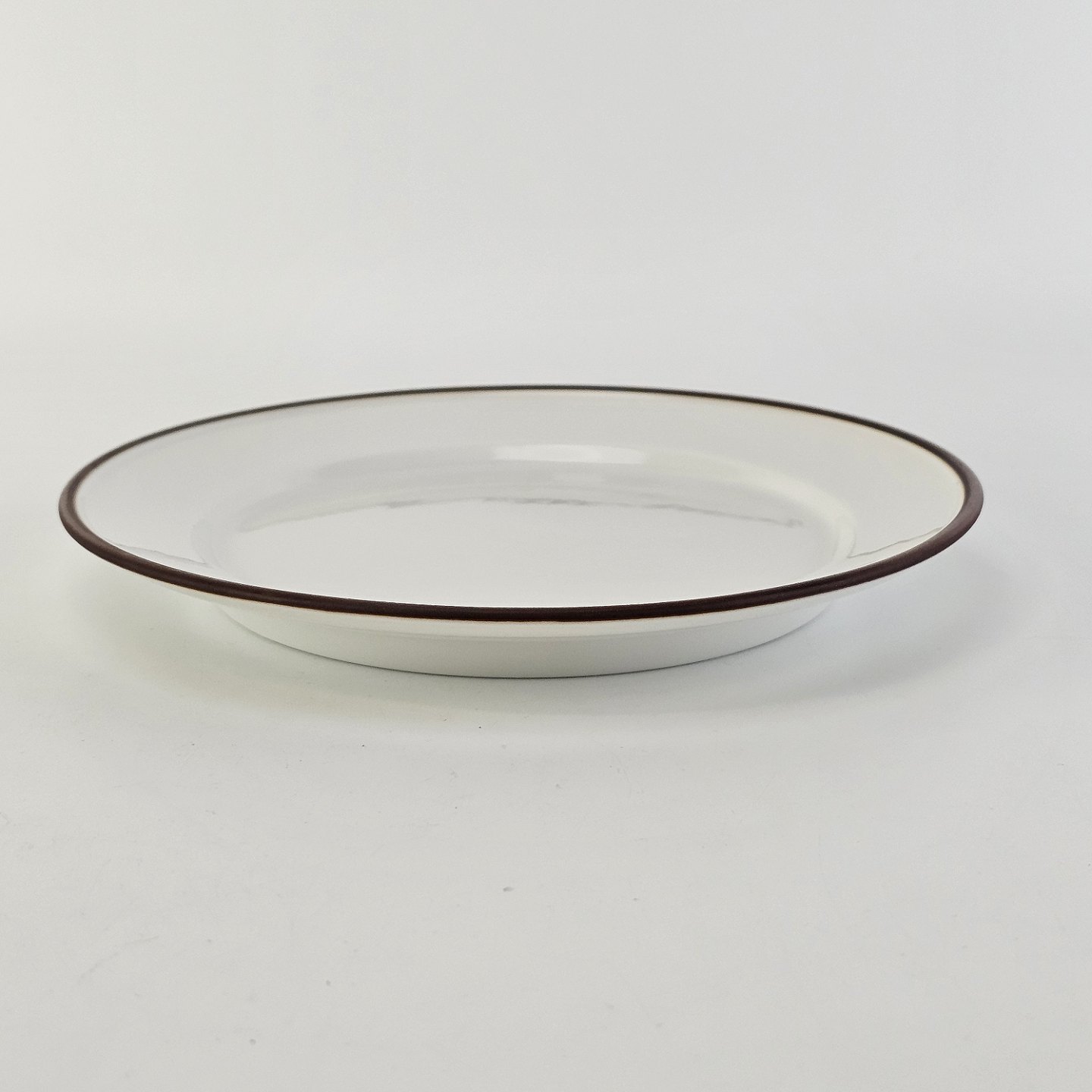 Service i glat hvidt porcelæn med brun kant