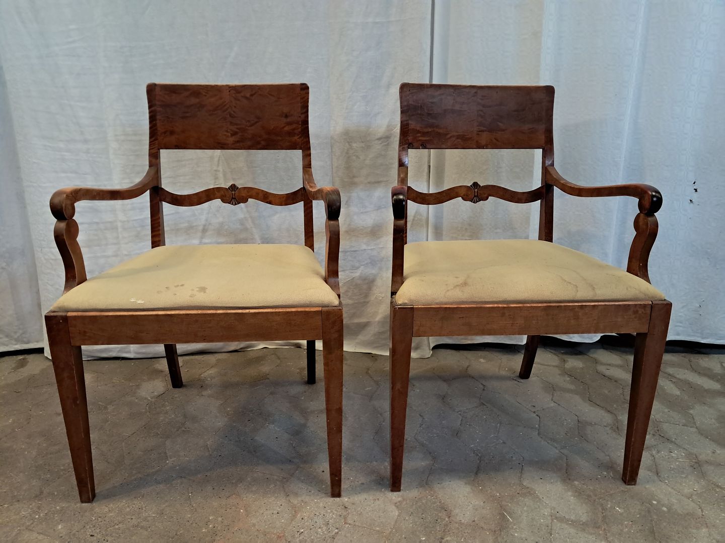 2 Stole i massivt birketræ, fra 1920erne.De har brugsspor.