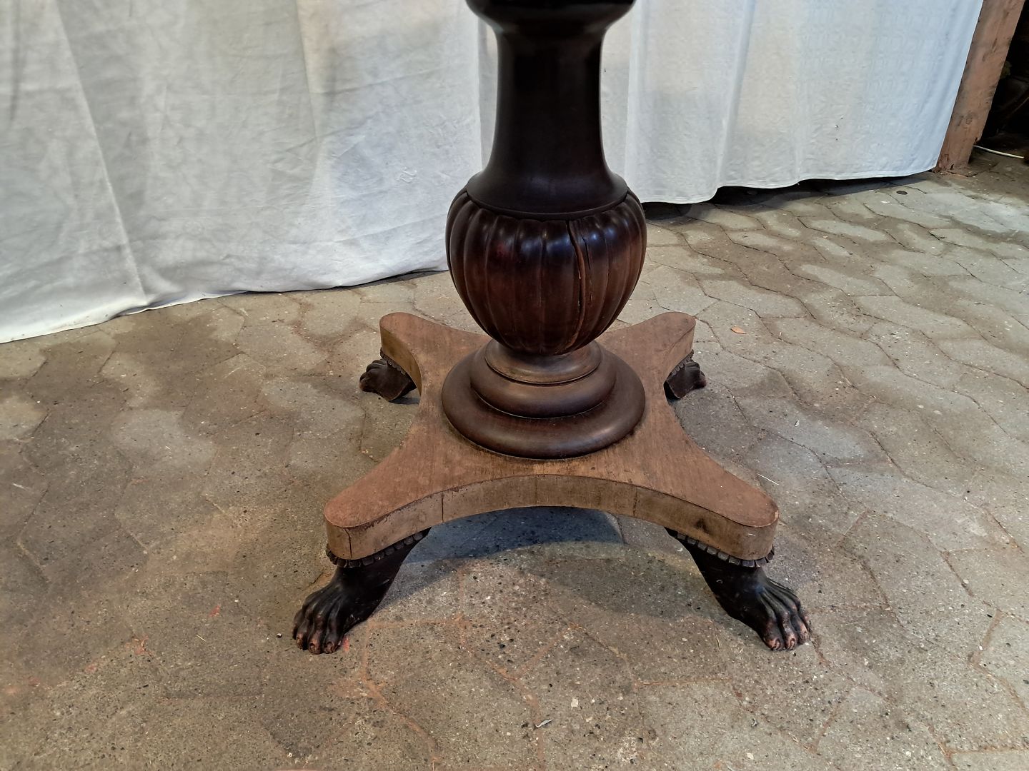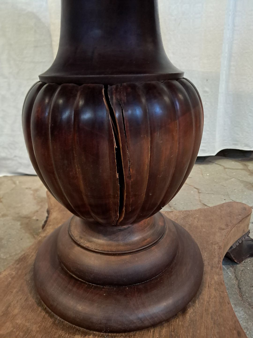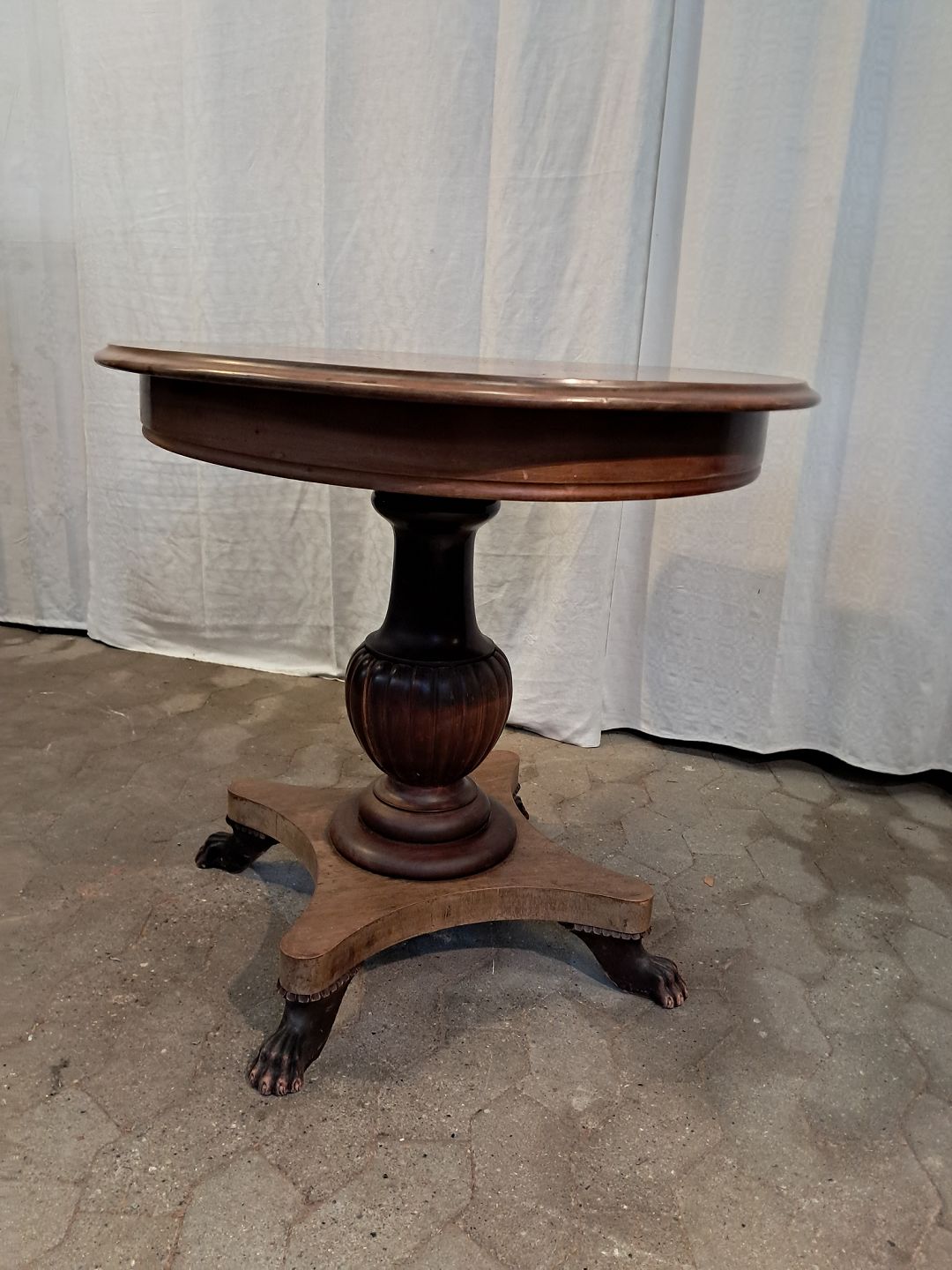 Ovalt salonbord i massivt mahogni, fra 1910erne.Det har brugsspor og en reven i træet. (se foto)