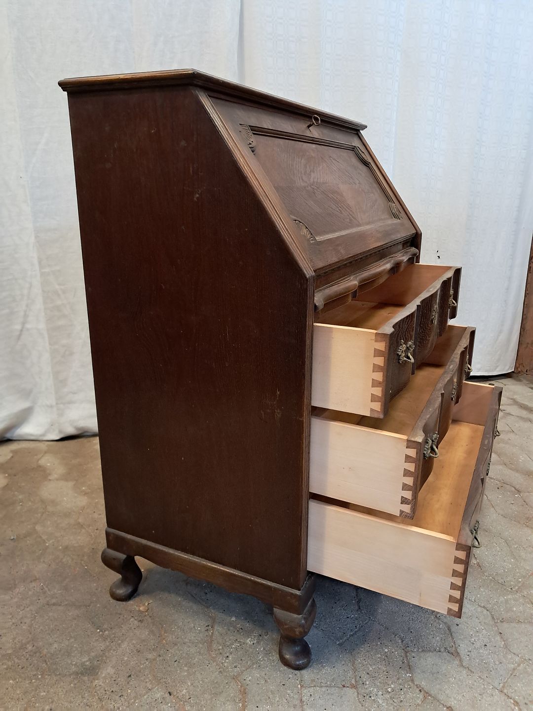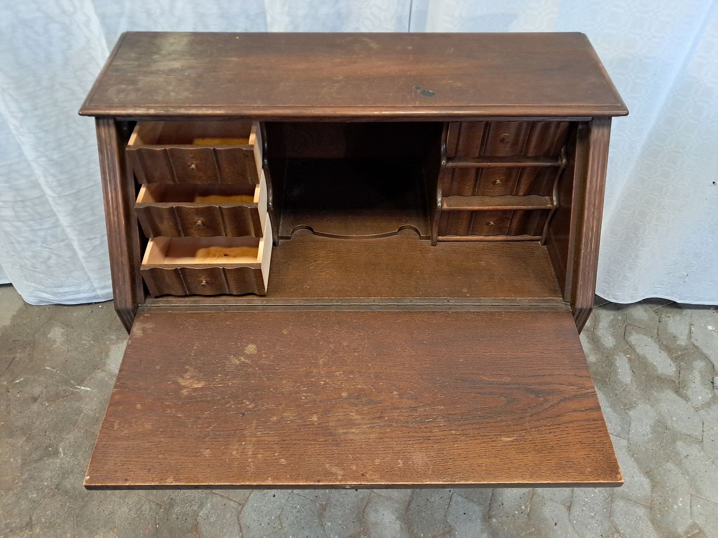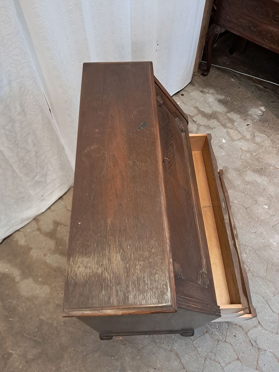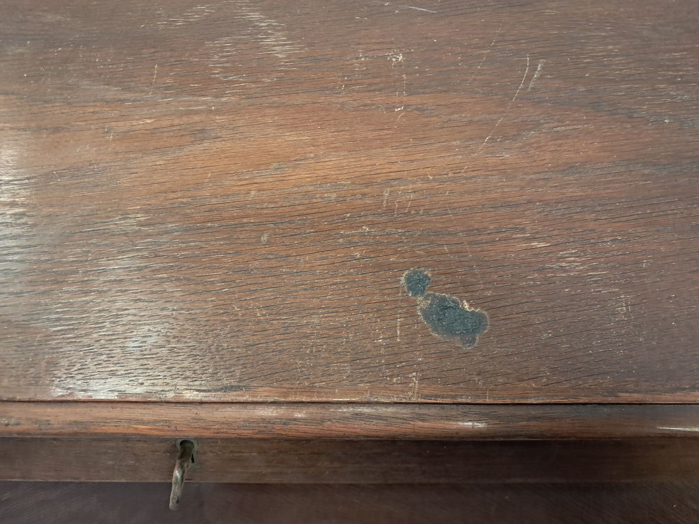 Chatol i fineret egetræ, fra 1980erne.Det har brugsspor og et brændemærke.