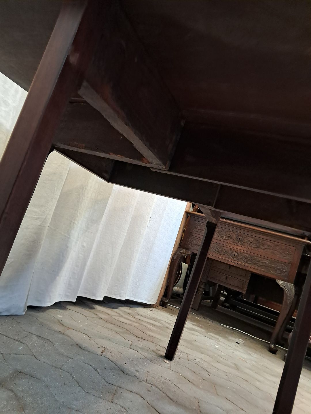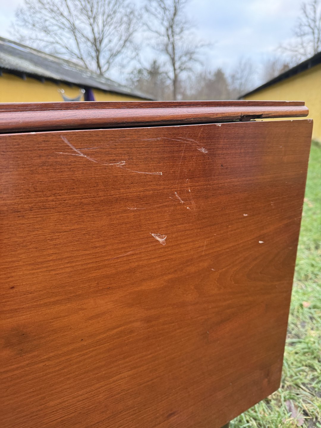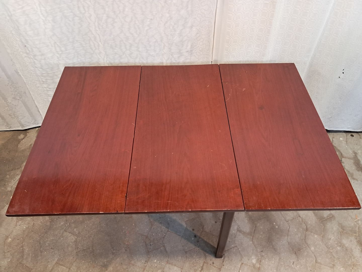 Klapbord i massivt mahogni, fra 1920erne.Det har brugsspor.