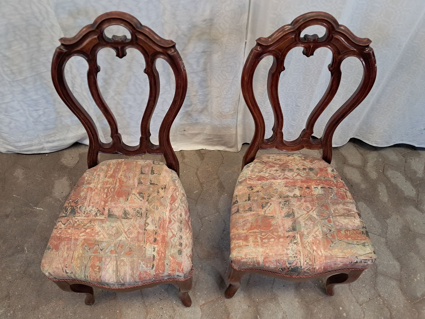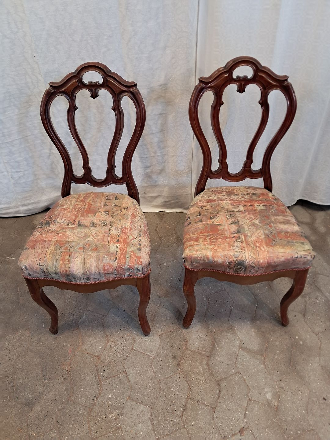 2 Salonstole i massivt mahogni, fra 1900erne.De har brugsspor.