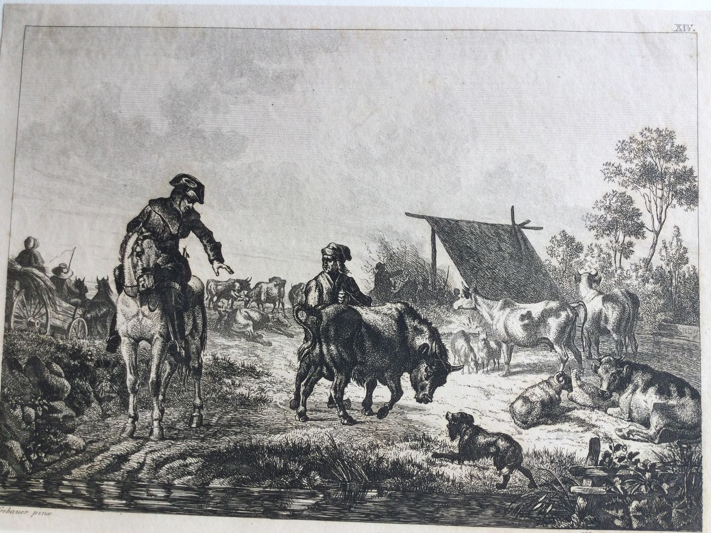 Ætsning af Christian Holm 1832 - Et Kvægmarked.