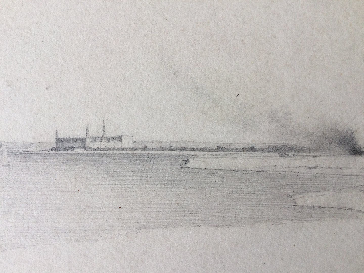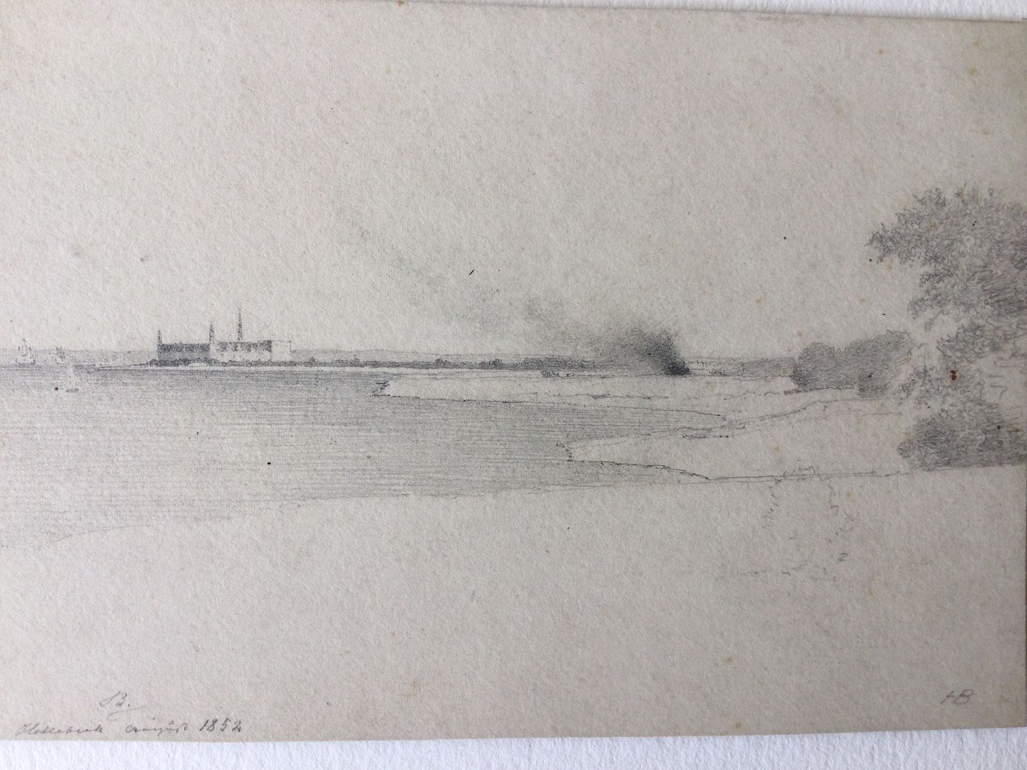 Udsigt fra Hellebæk mod Kronborg Slot 1852.