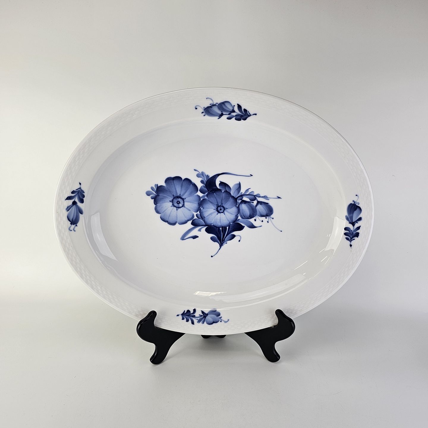 Stort ovalt fad i porcelæn fra stellet Blå Blomst Flettet. Nr 10/8018Formgiver Arnold Krog
