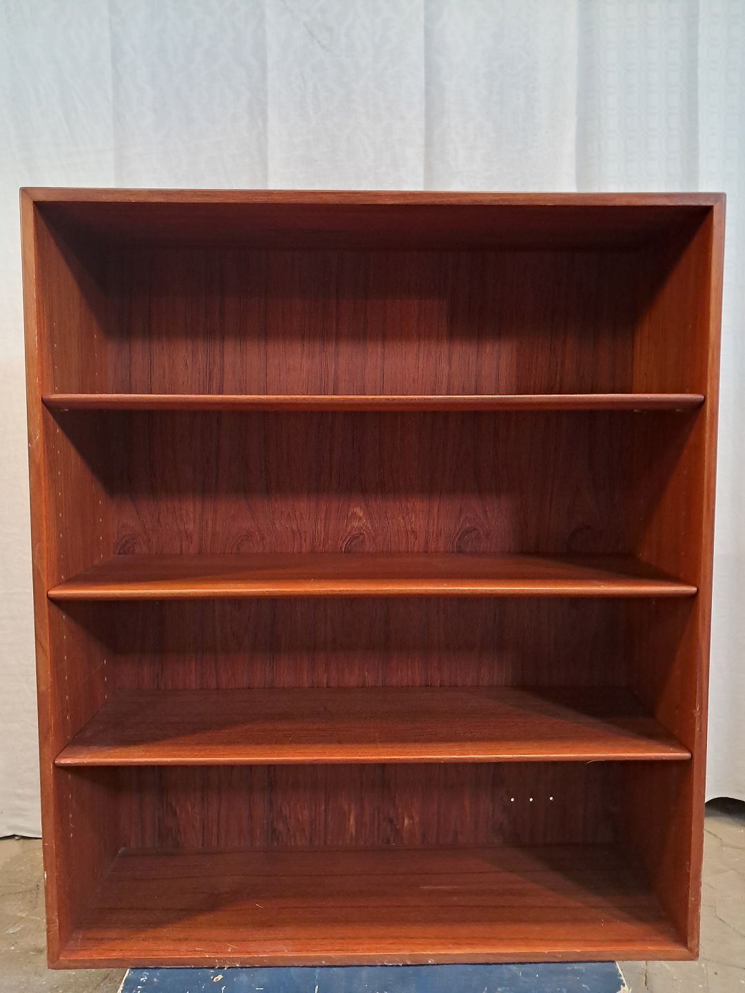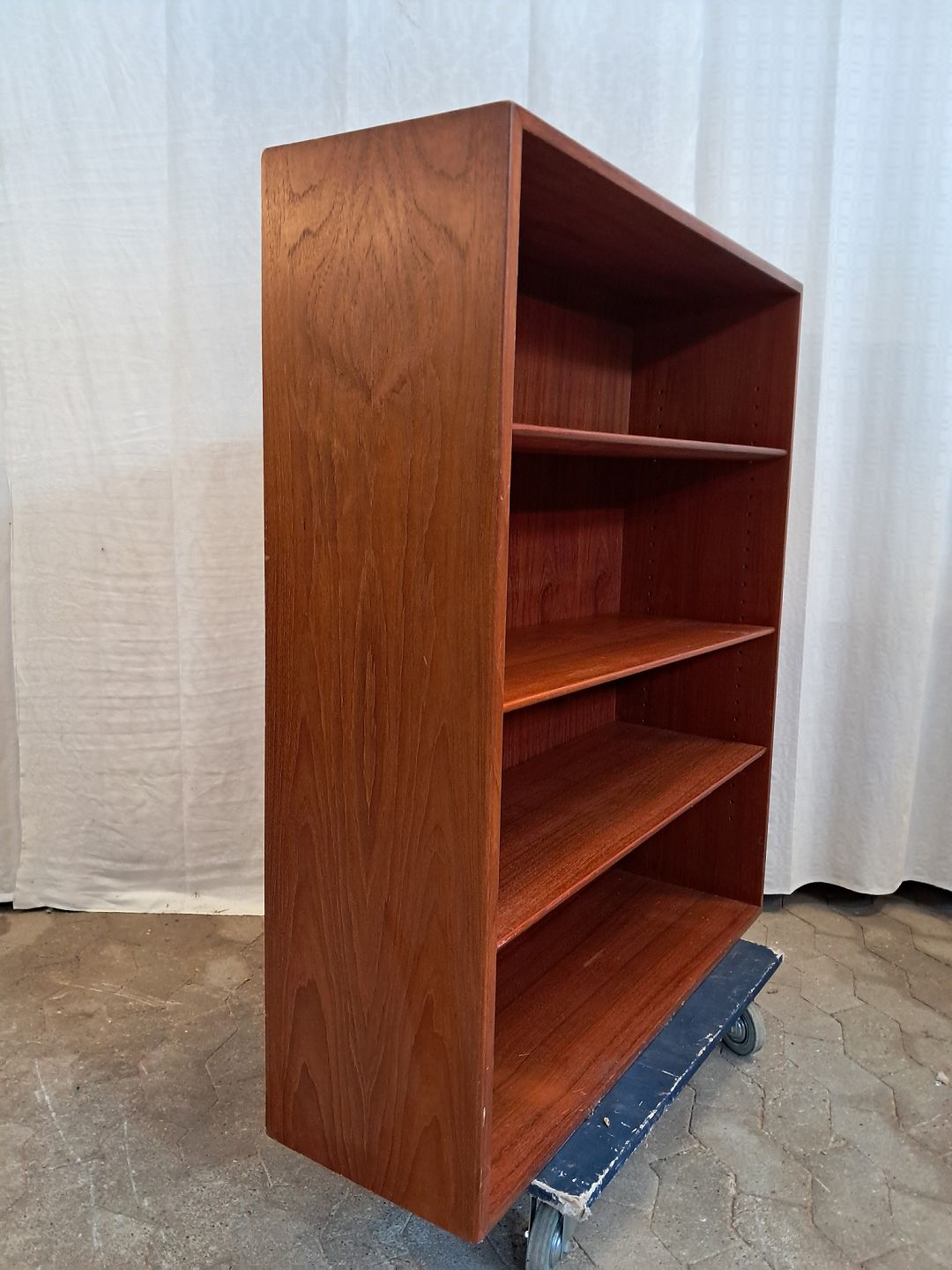 Reol i fineret teaktræ, fra 1960erne,designet af Børge Mogensen.