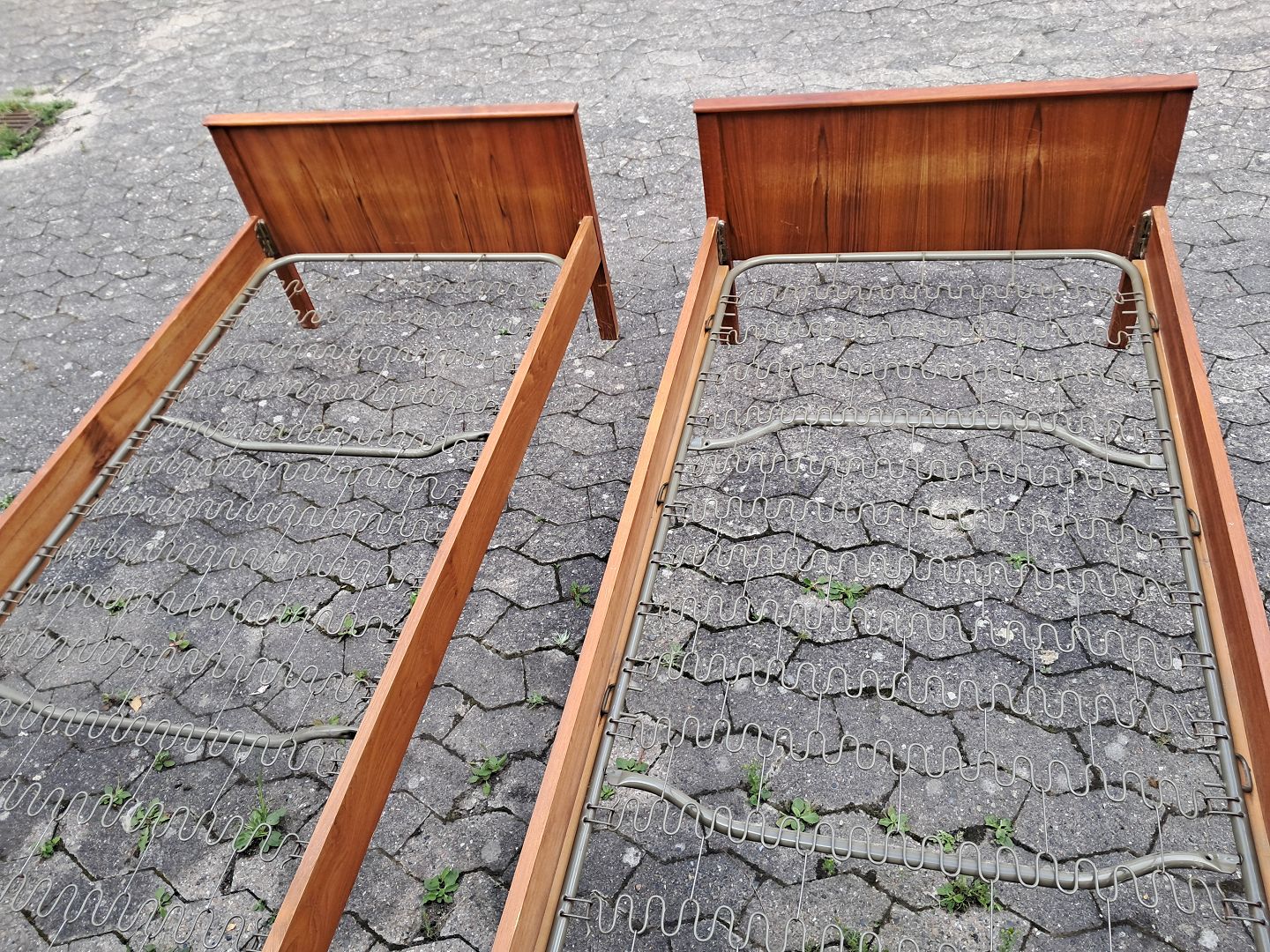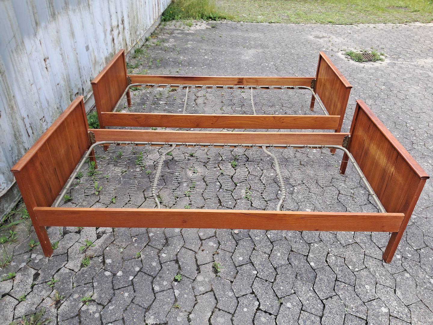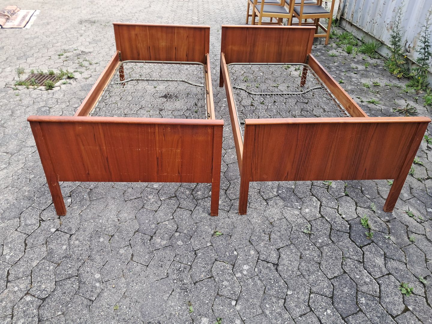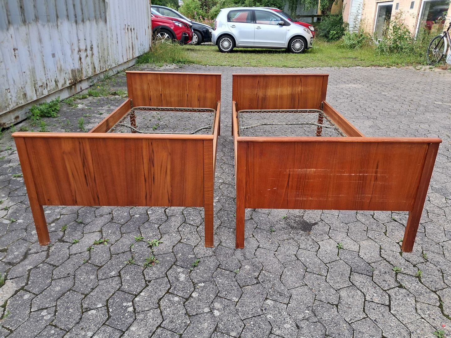 2 Senge i fineret teaktræ, fra 1960erne.De har brugsspor og der medfølger ikke madras.