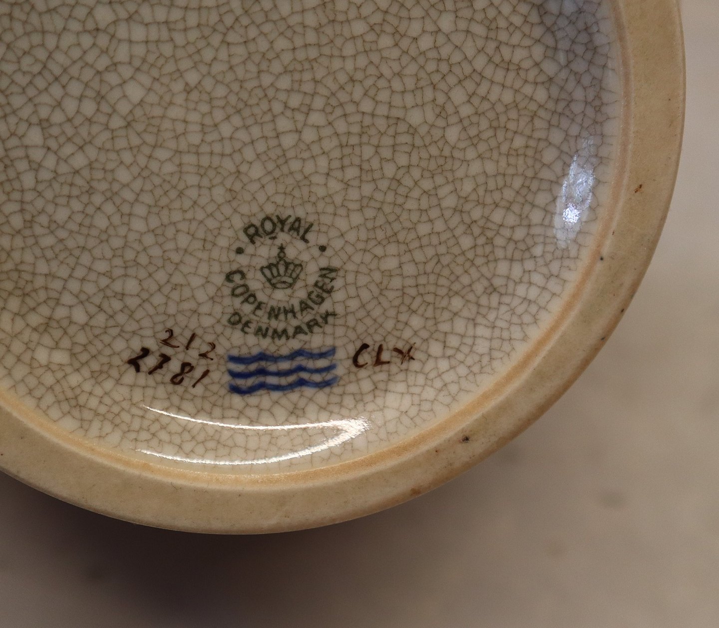 212-2781 RC Grey lidded vase with orange and gold 25 cmIn mint and nice condition Craquelé, Royal Copenhagen (Crackelure)