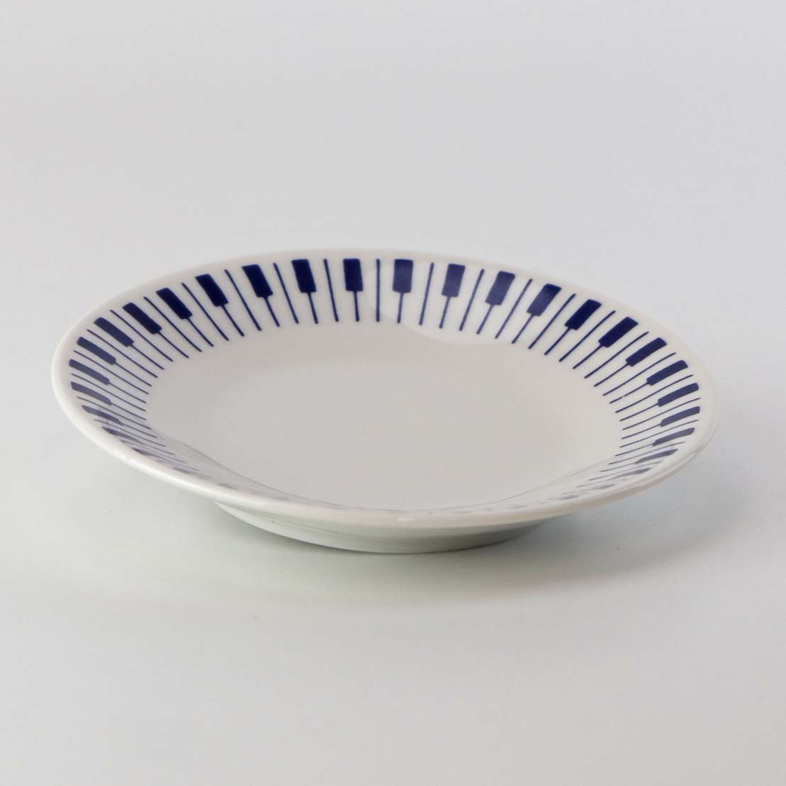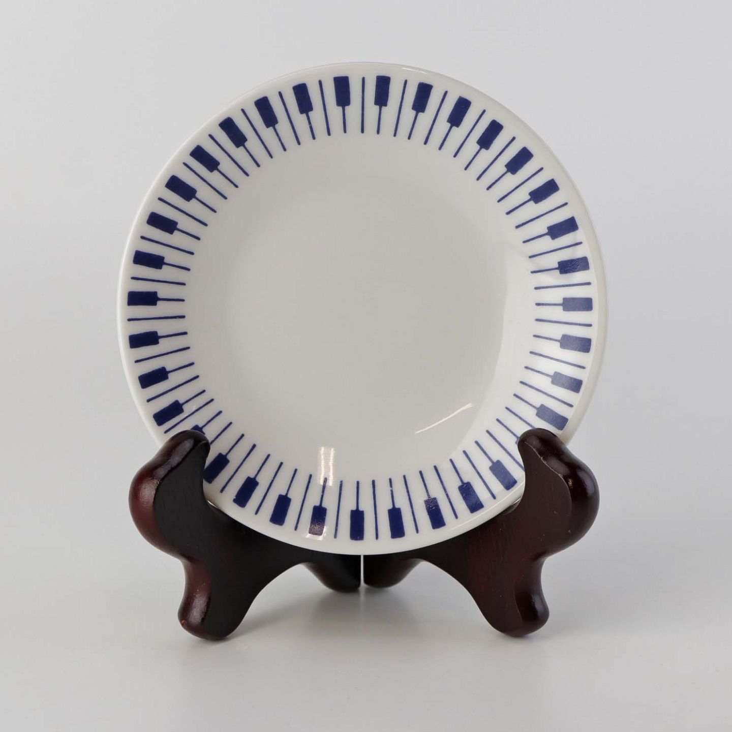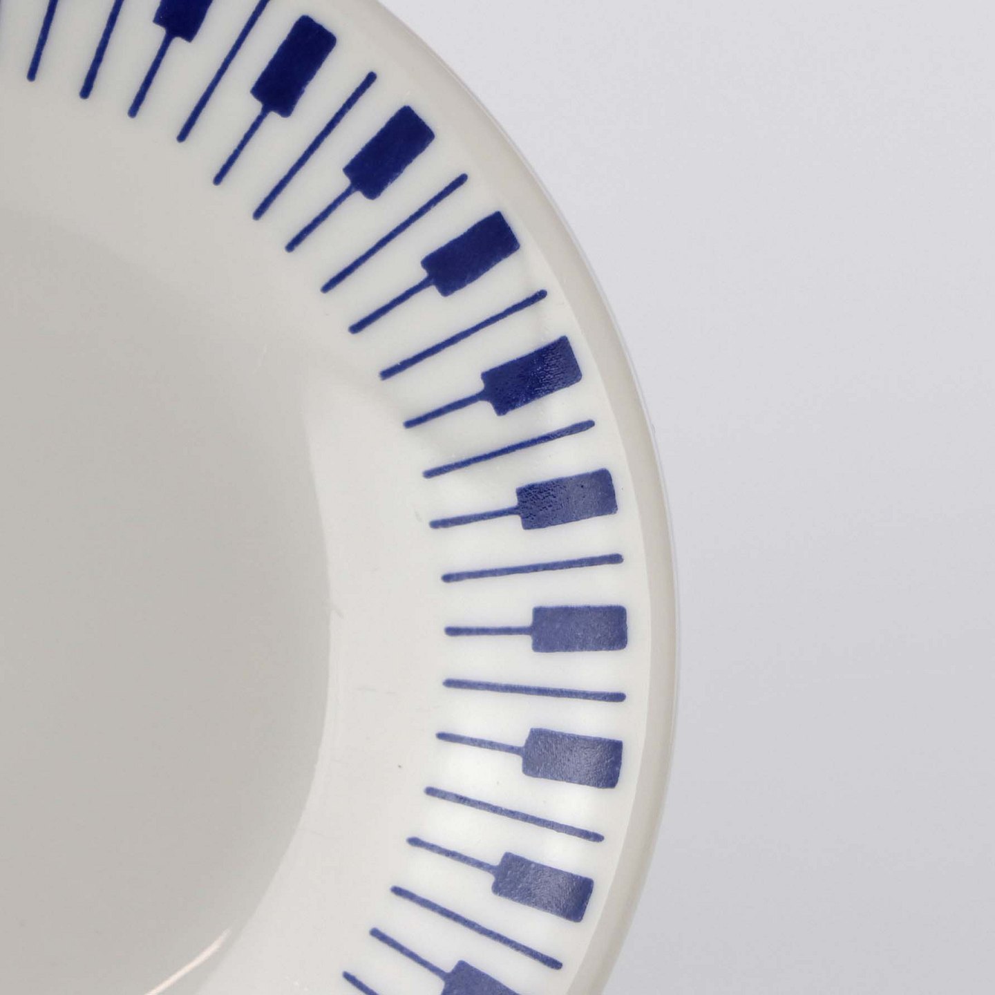 Stellet er fremstillet i ildfast glat porcelæn dekoreret med mørkeblå tangenter på hvid baggrund.