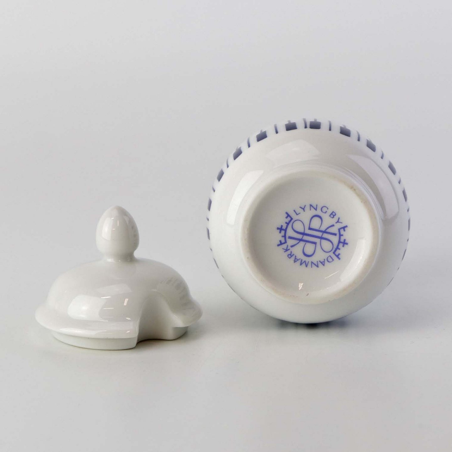 Krukke til sennep med låg i porcelæn fra stellet Danild 64 - også kendt under navnet Tangent.Formgiver Axel Brüel og Egon Mortensen