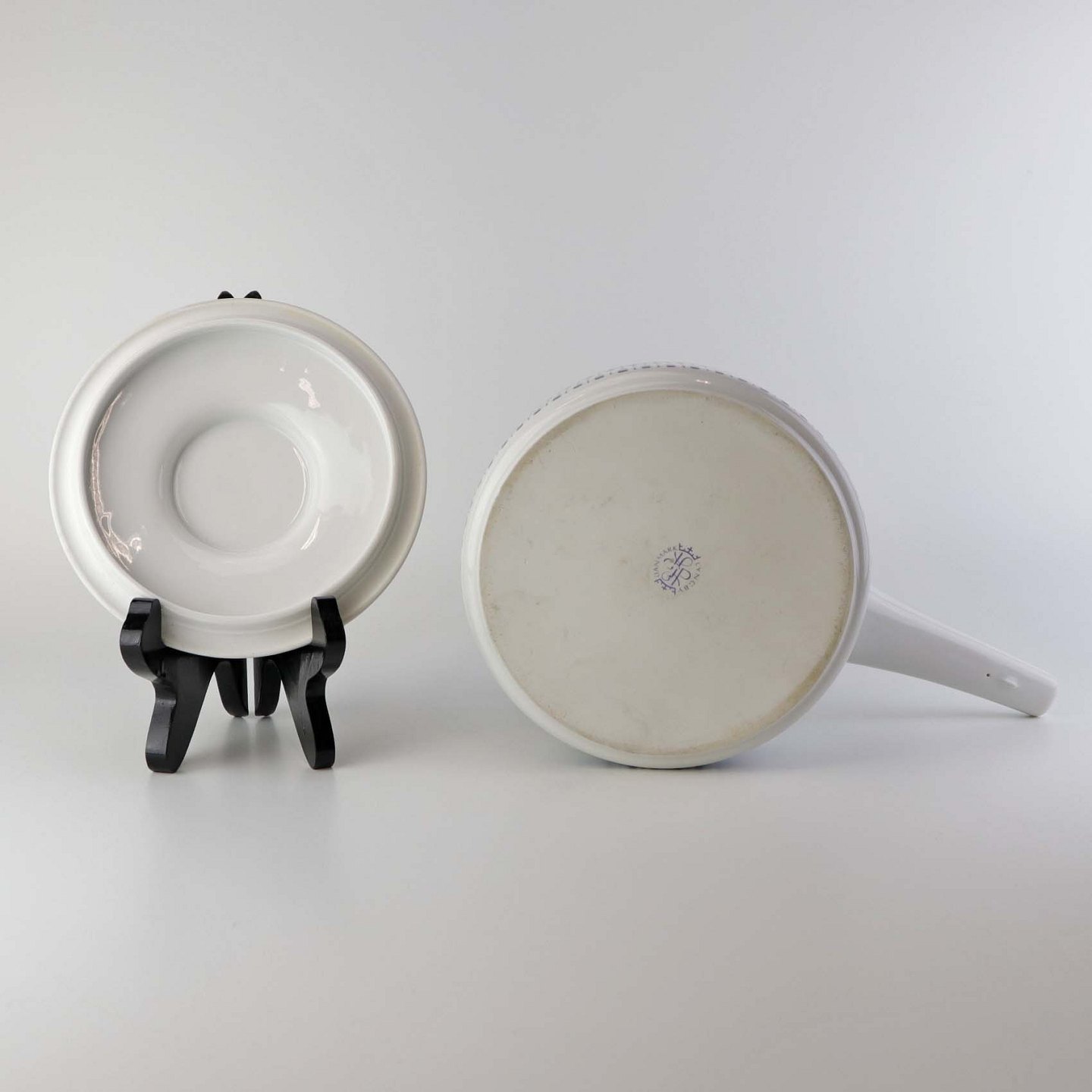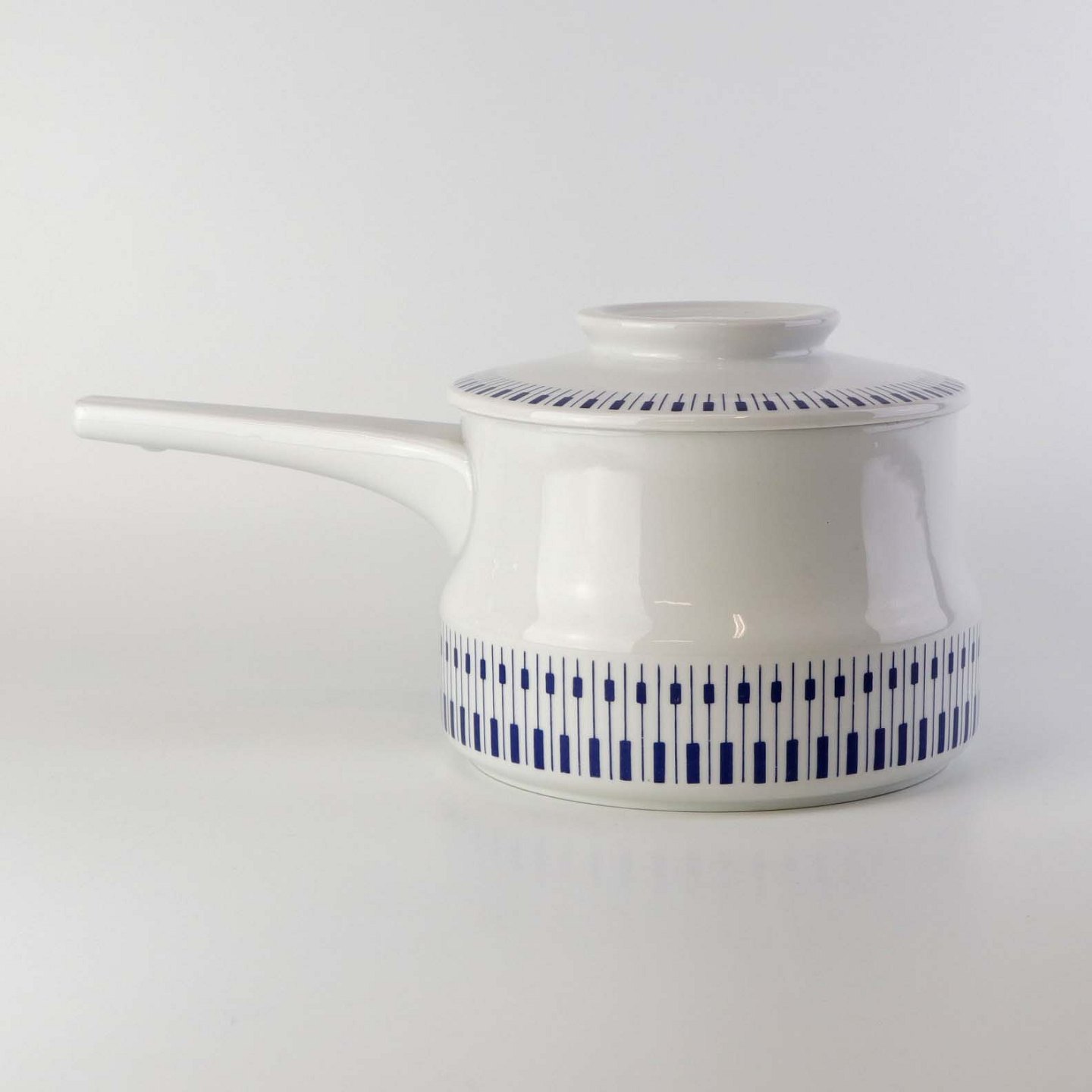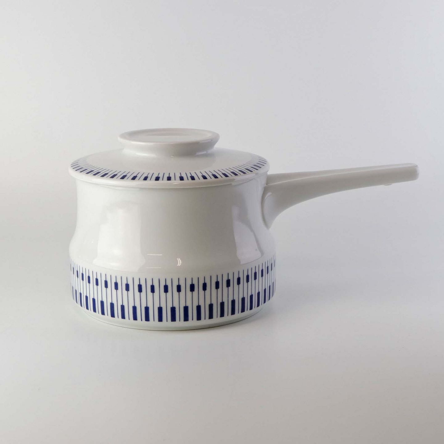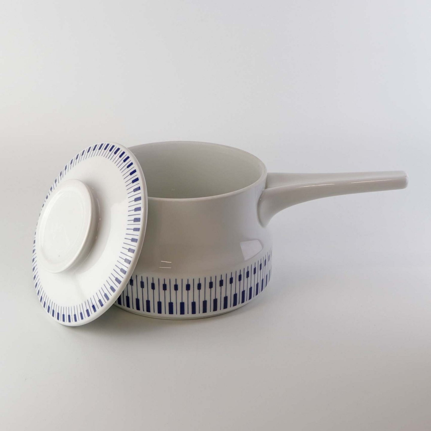 Kasserolle med låg og hank i porcelæn fra stellet Danild 64 - også kendt under navnet Tangent.Formgiver Axel Brüel og Egon Mortensen