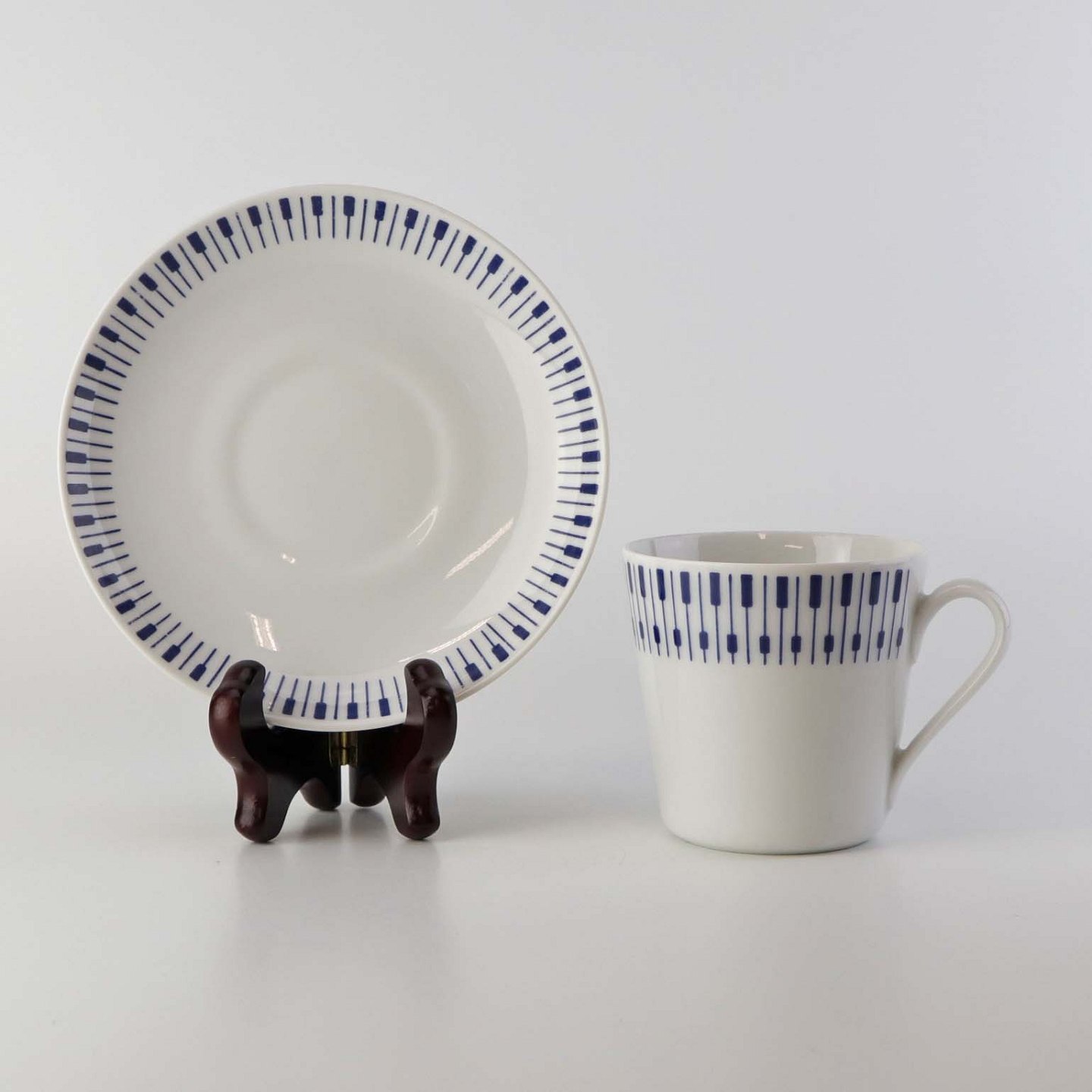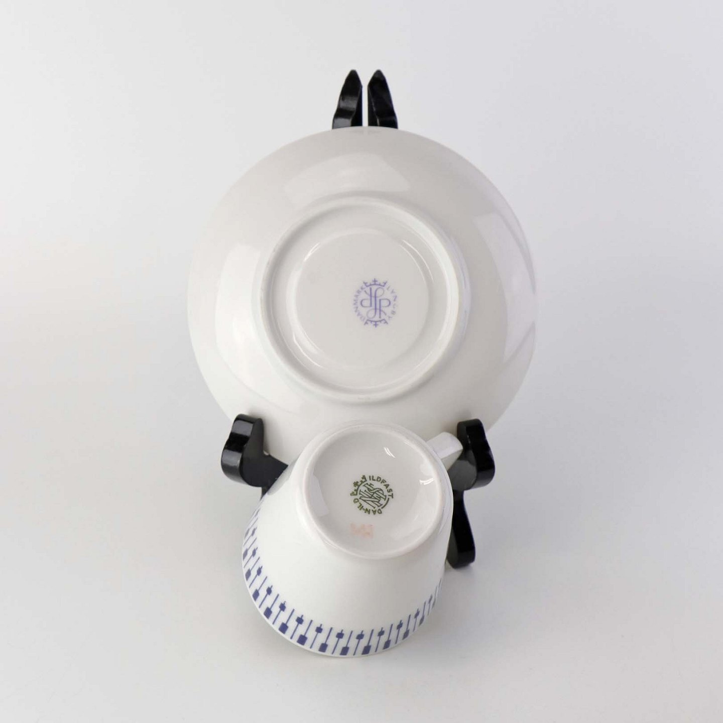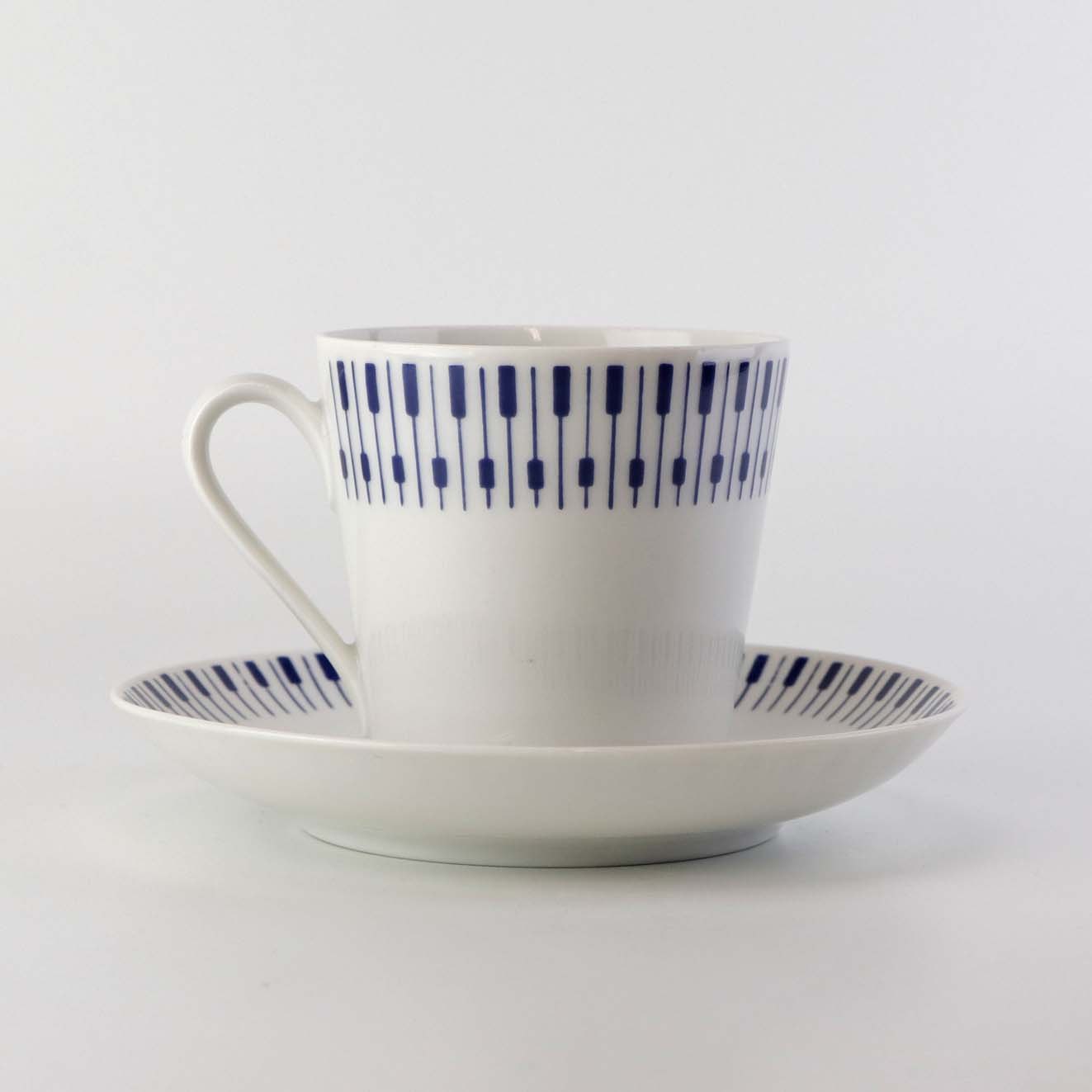 Kaffekop med underkop i porcelæn fra stellet Danild 64 - også kendt under navnet Tangent.Formgiver Axel Brüel og Egon Mortensen