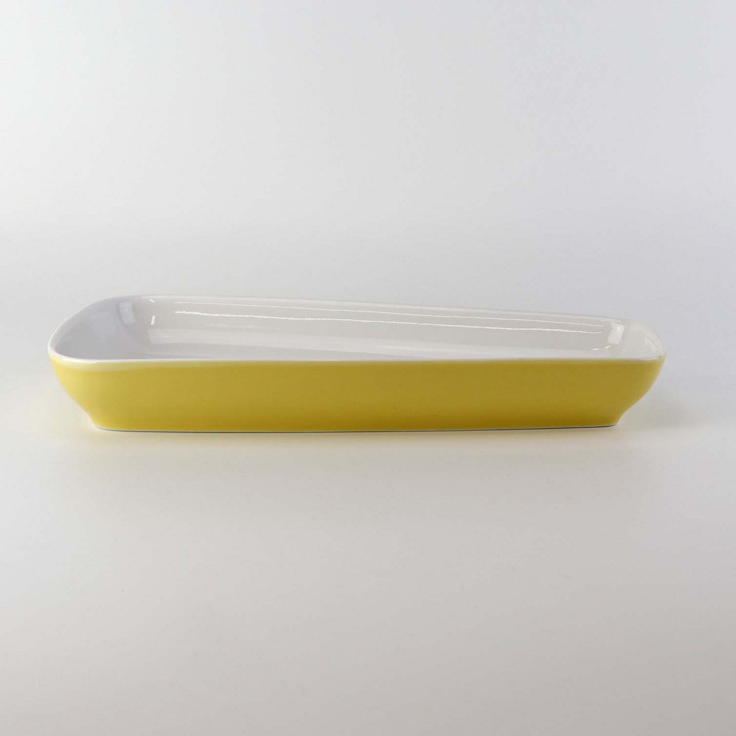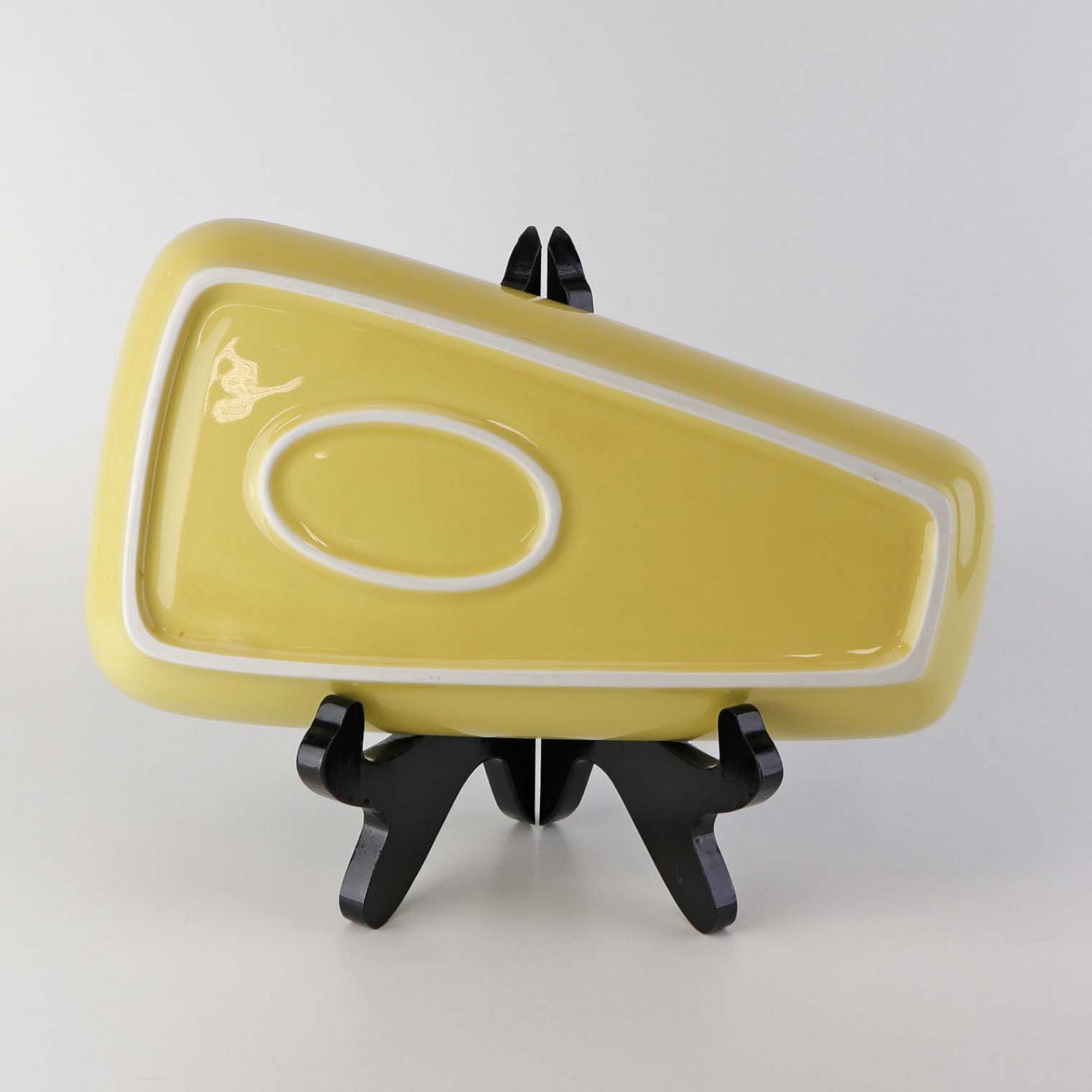 Lille trekantet serveringsfad i porcelæn fra stellet Gul glasurfarvet.Producent Porcelænsfabrikken Danmark