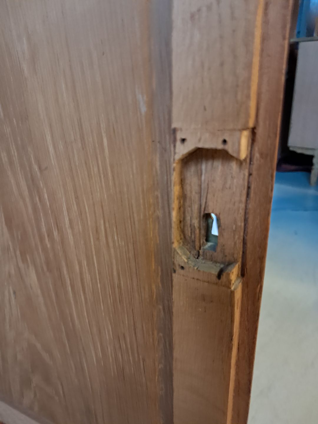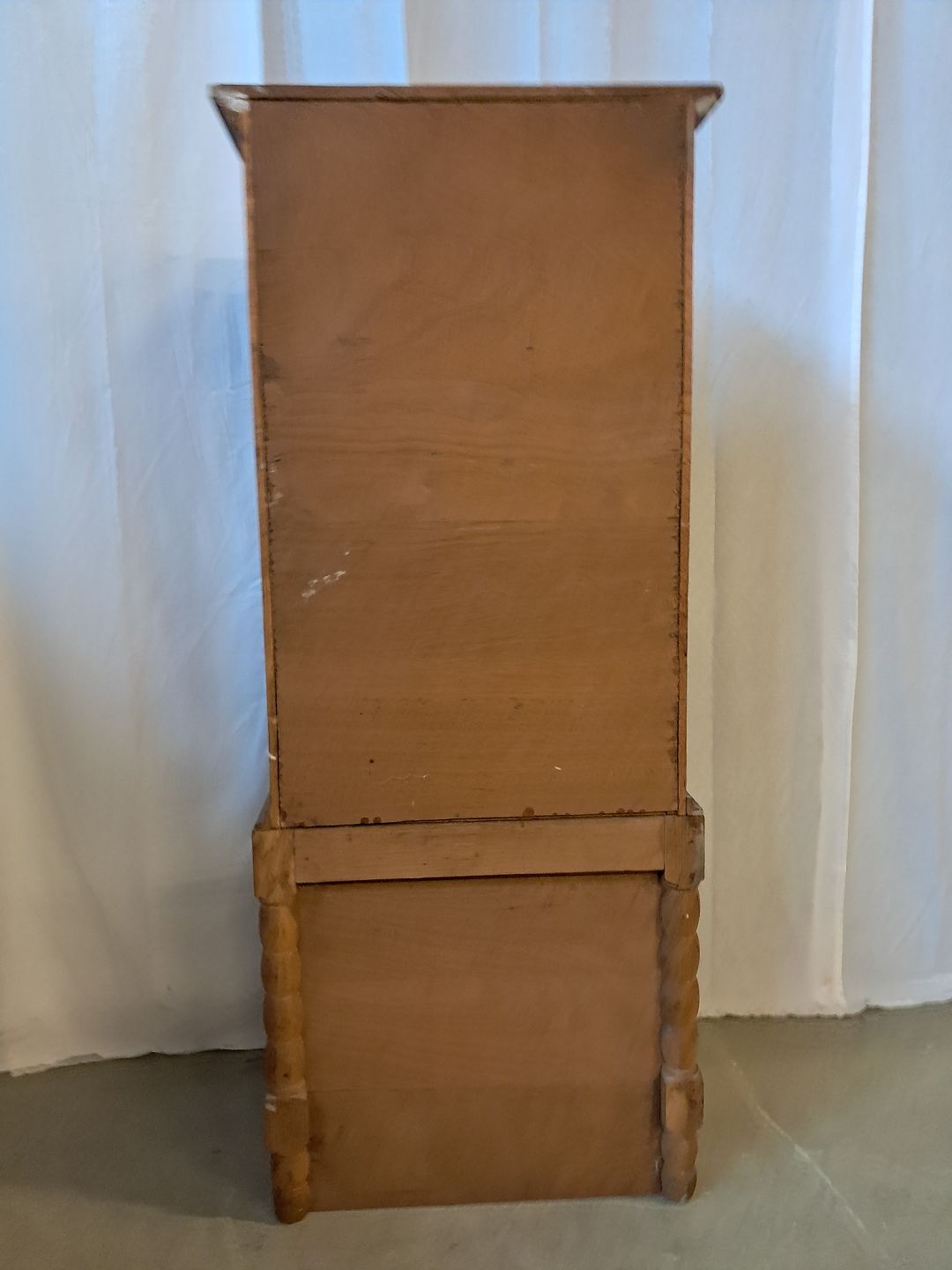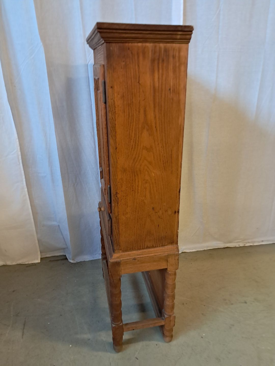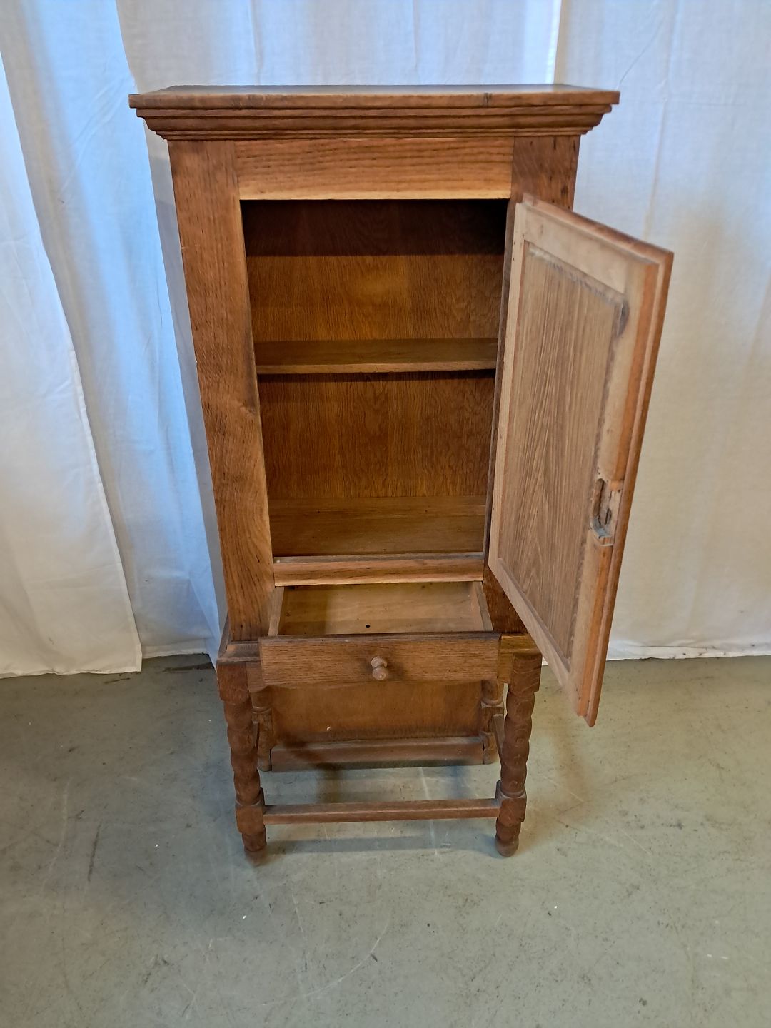 Skab i massivt egetræ, fra 1980erne.Det har brugsspor og mangler låsen.