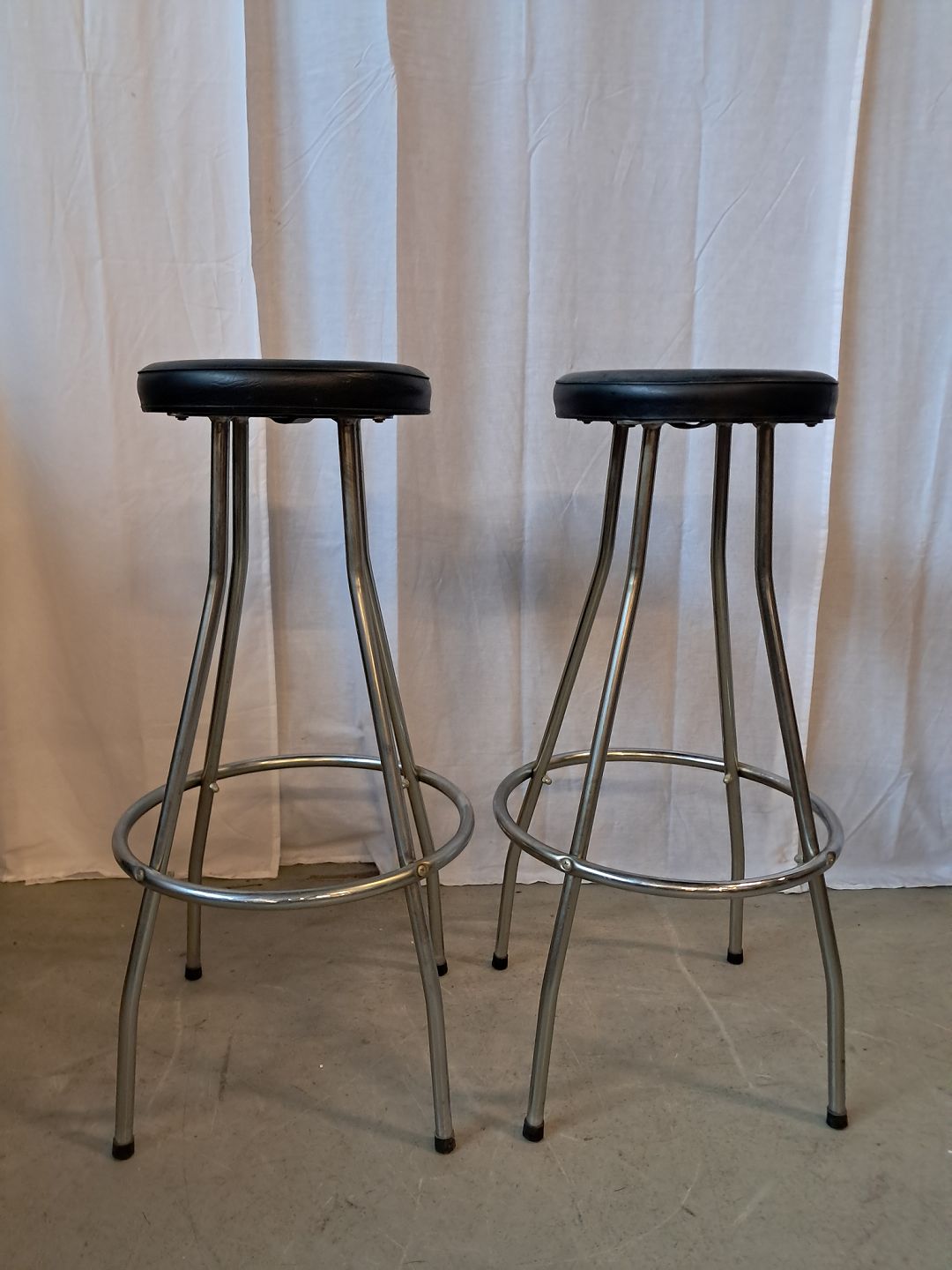 2 Barstole i metal og kunstlæder, fra 1980erne.De har brugsspor.
