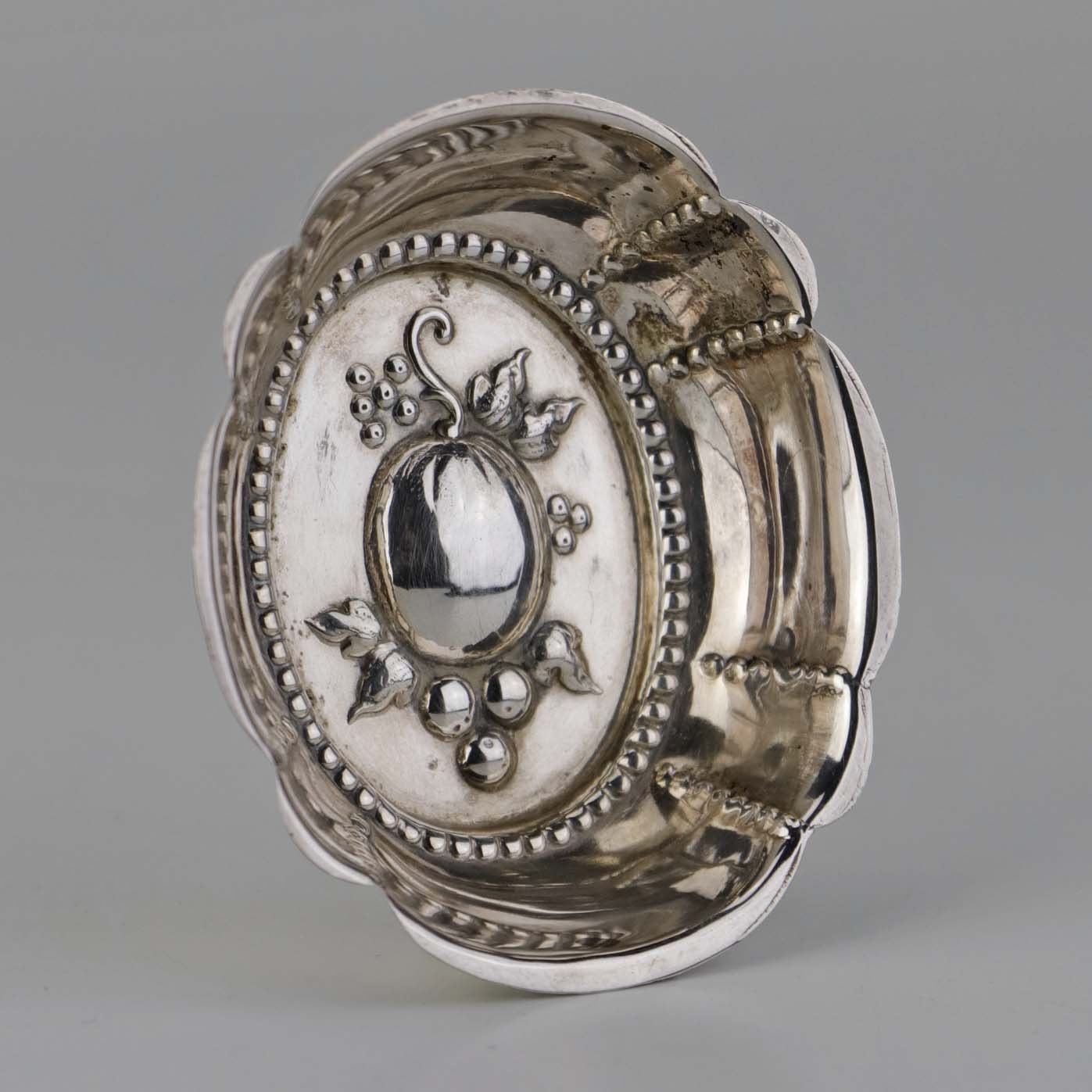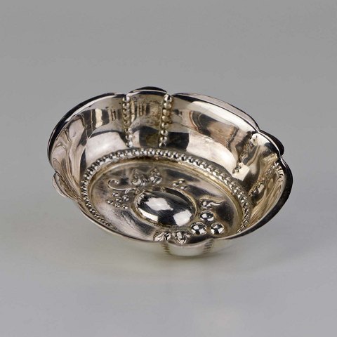 Lille kar i 830 sølv med motiv af frugt, bær og blade.Producent Sølvsmed Christian Michelsen