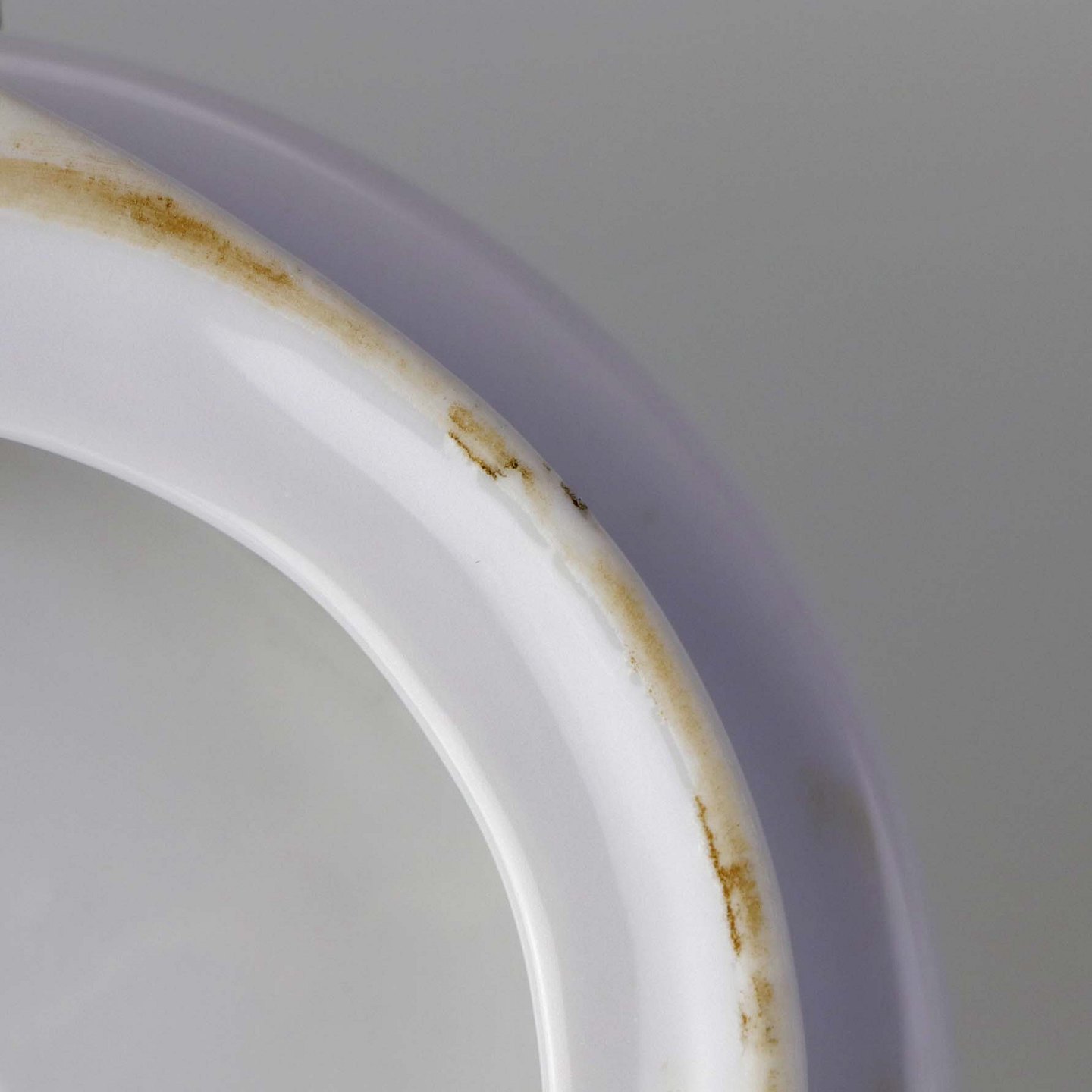 Stellet er i glat hvidt porcelæn med varierende farverige motiver af frugter og grønt.