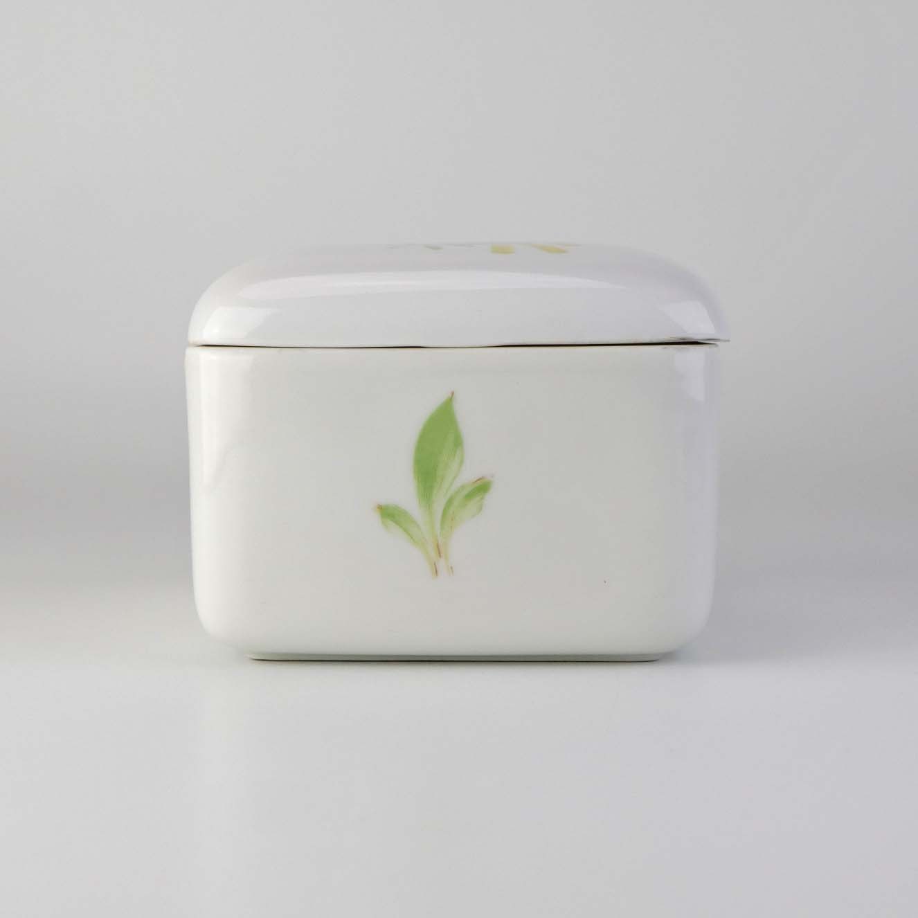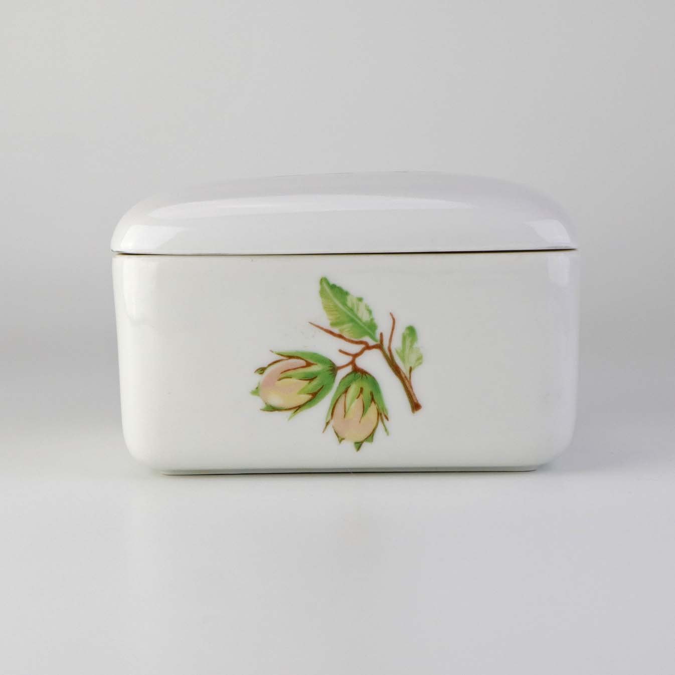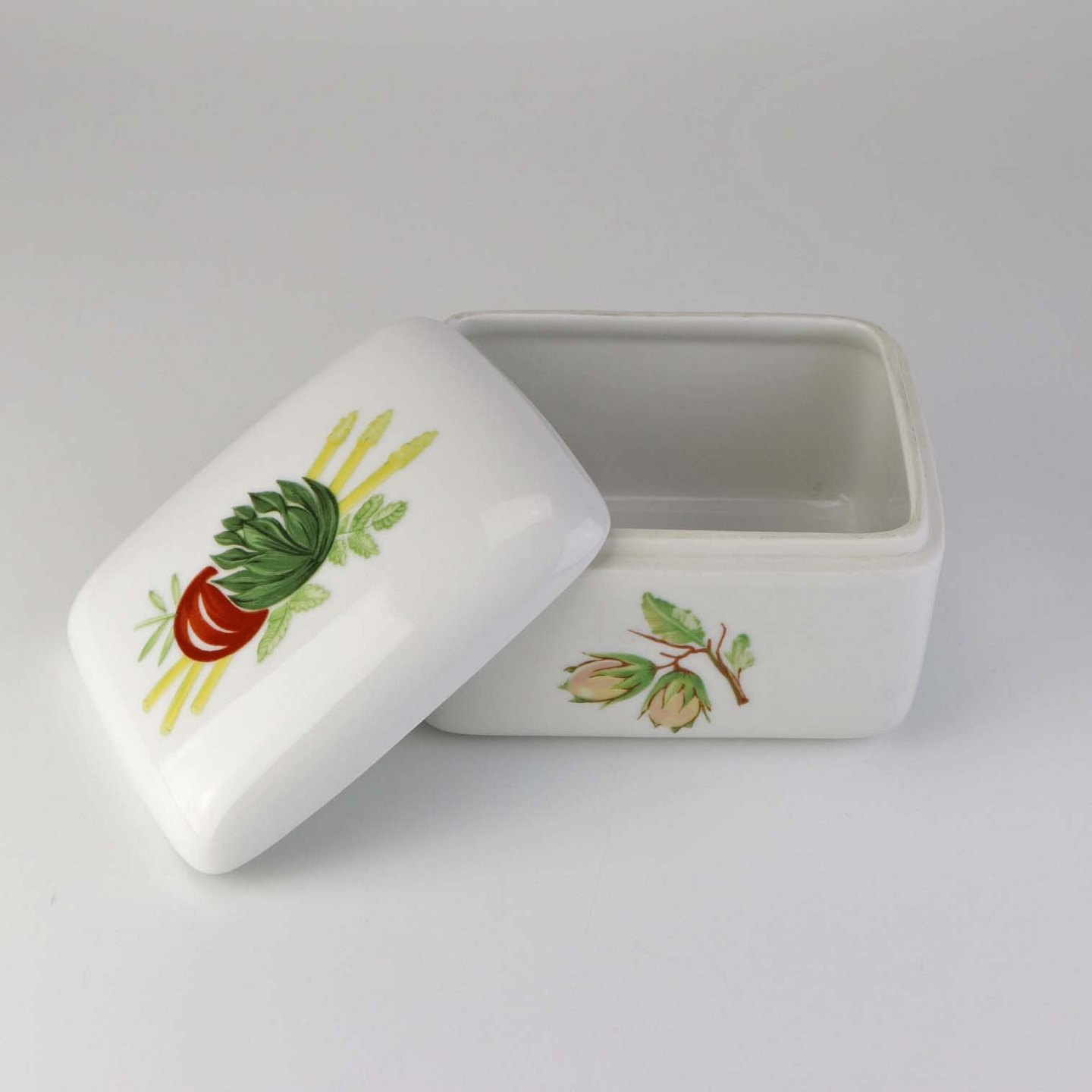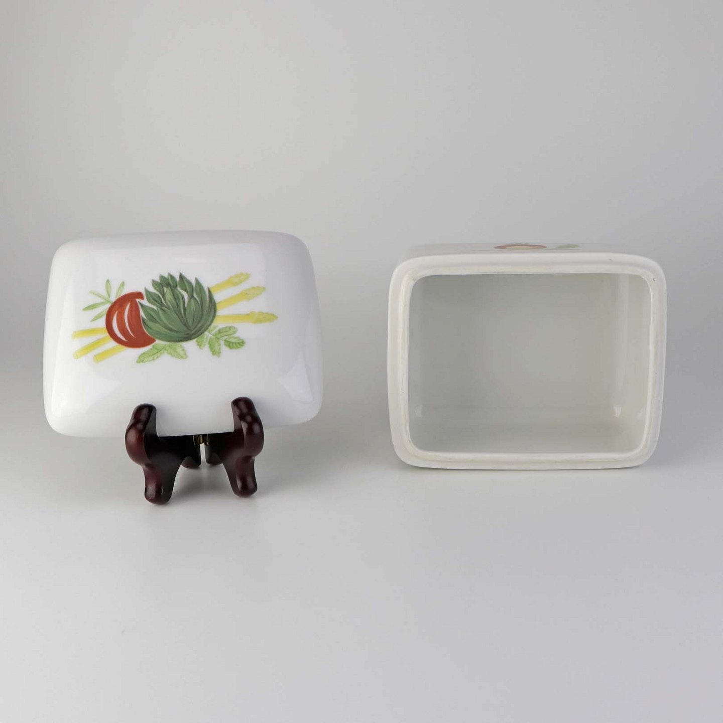 Opbevaringsboks til smør i porcelæn fra stellet Danild 50 Frugt og grønt - også kendt som Picnic stellet.Producent Porcelænsfabrikken Danmark
