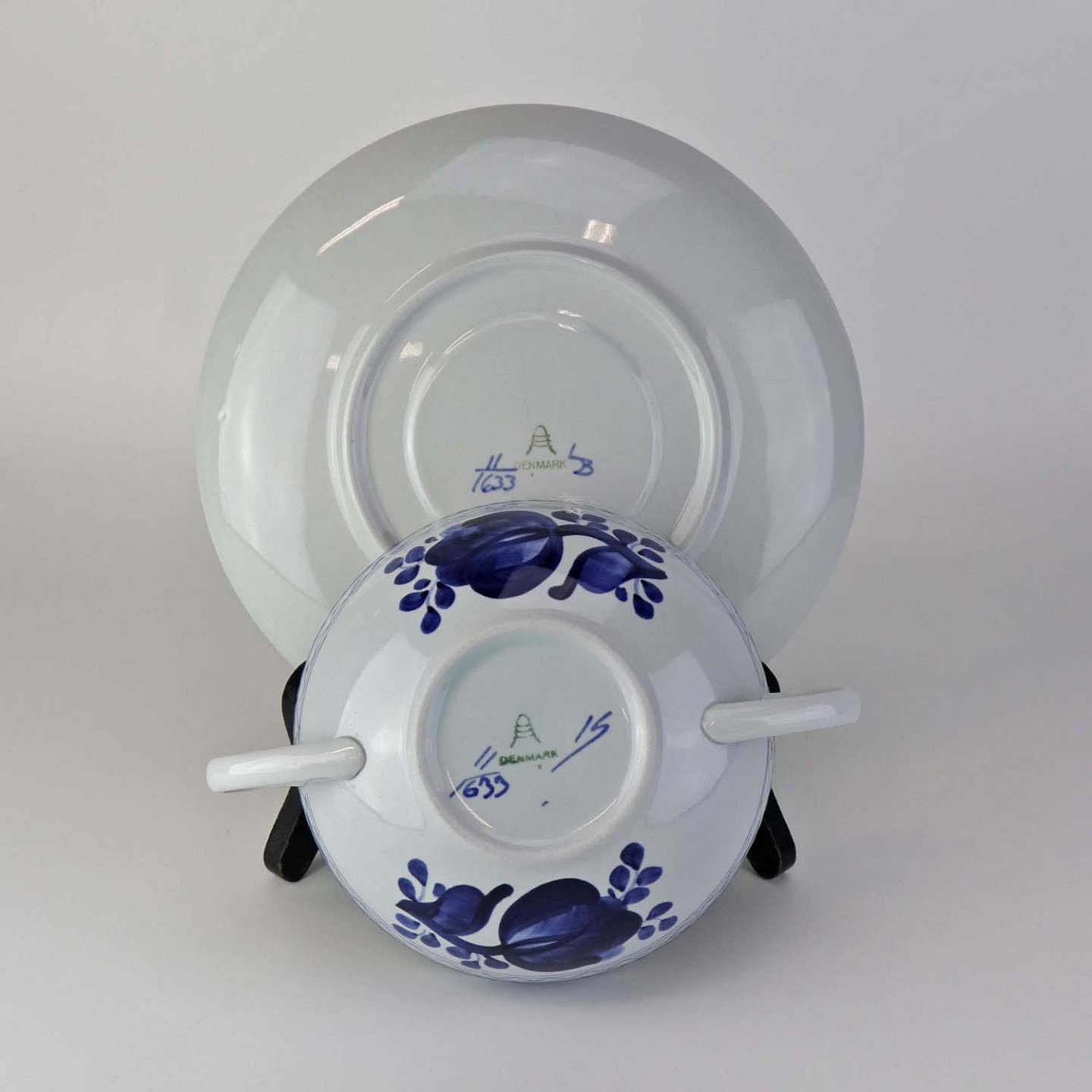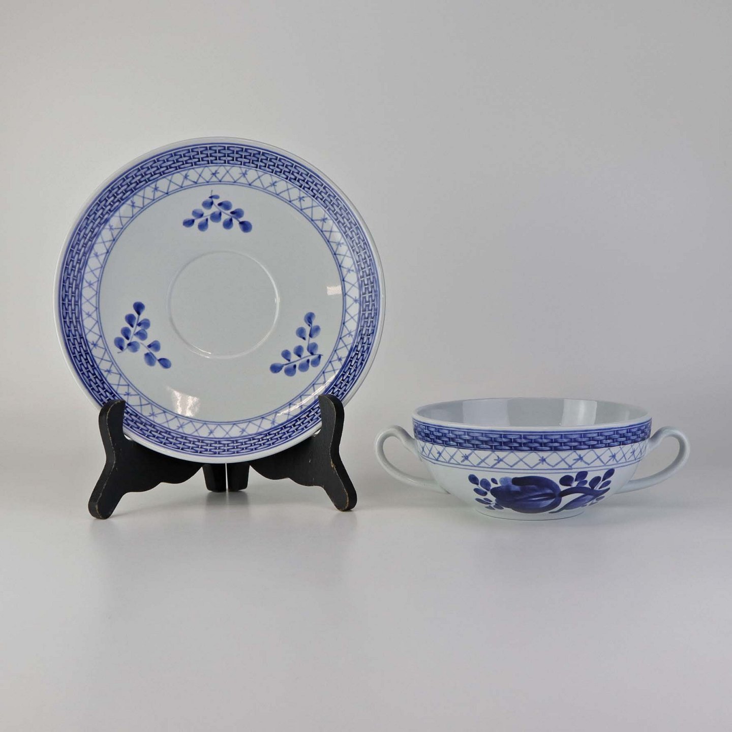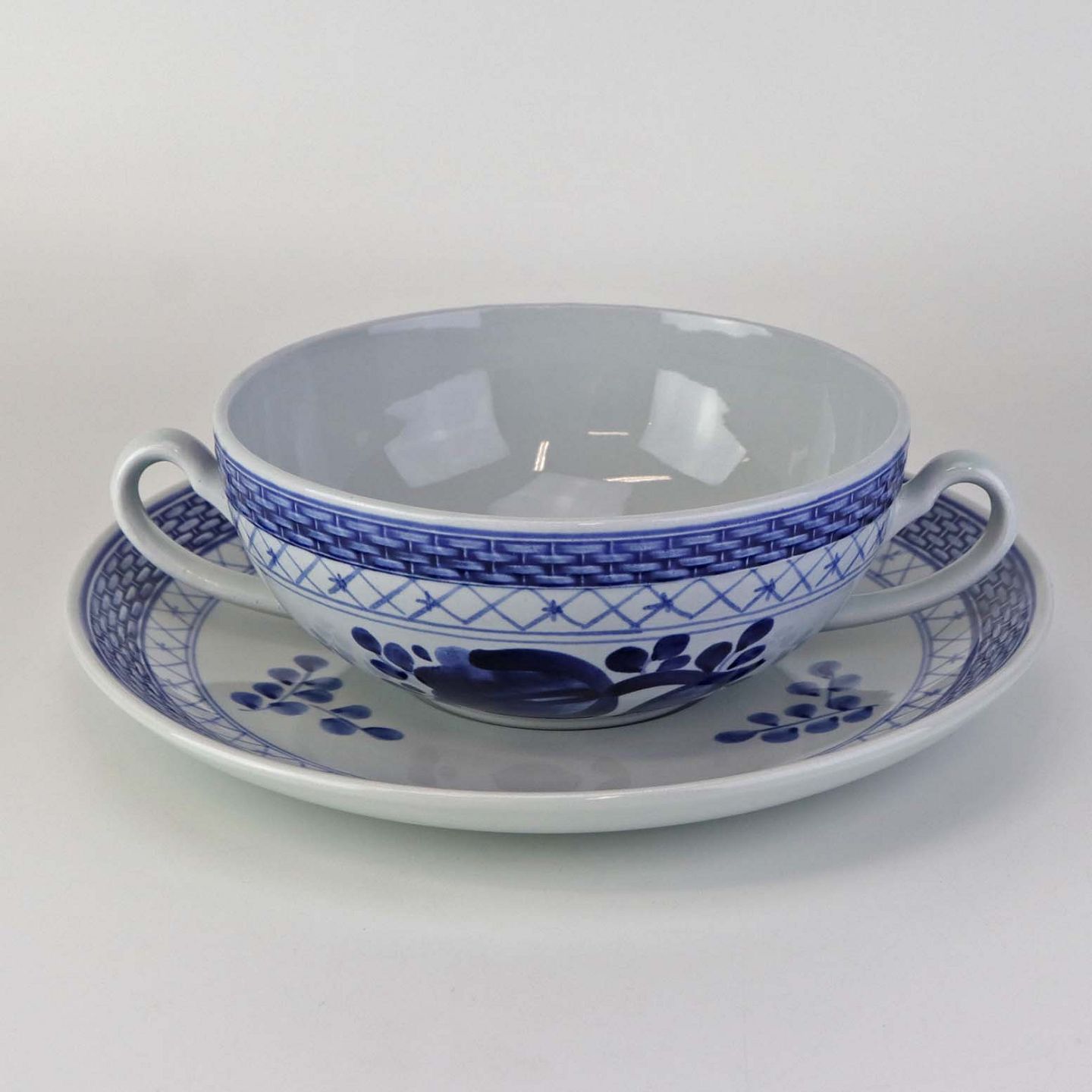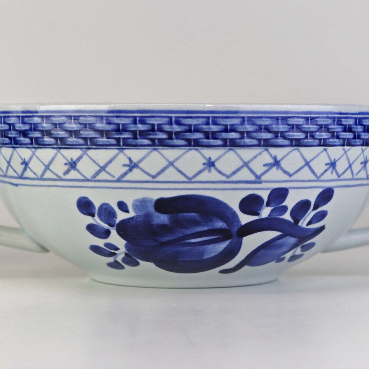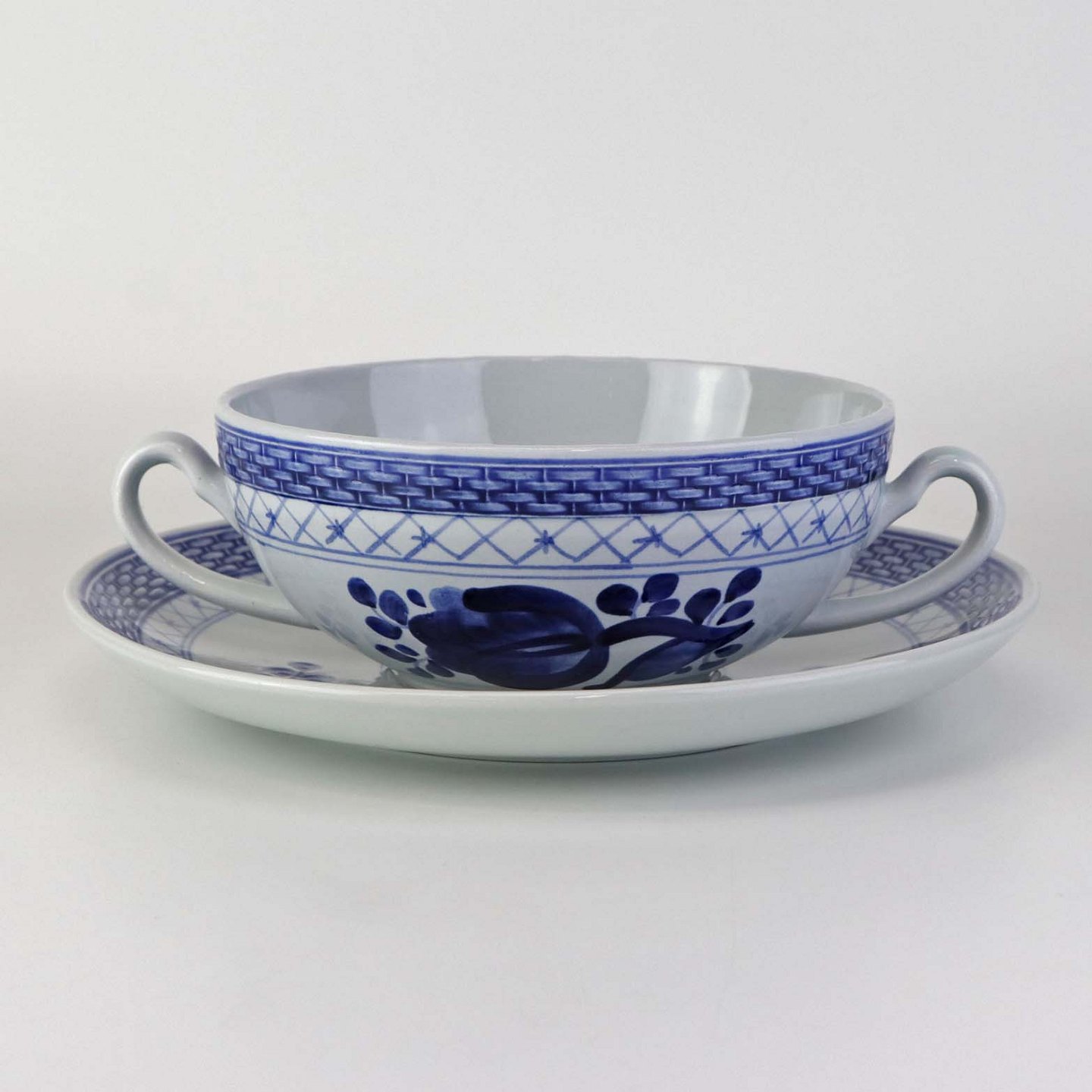 Boullionkop med underkop i fajance fra stellet Blå Tranquebar nr. 11/1633Formgiver Hans Christian Joachim