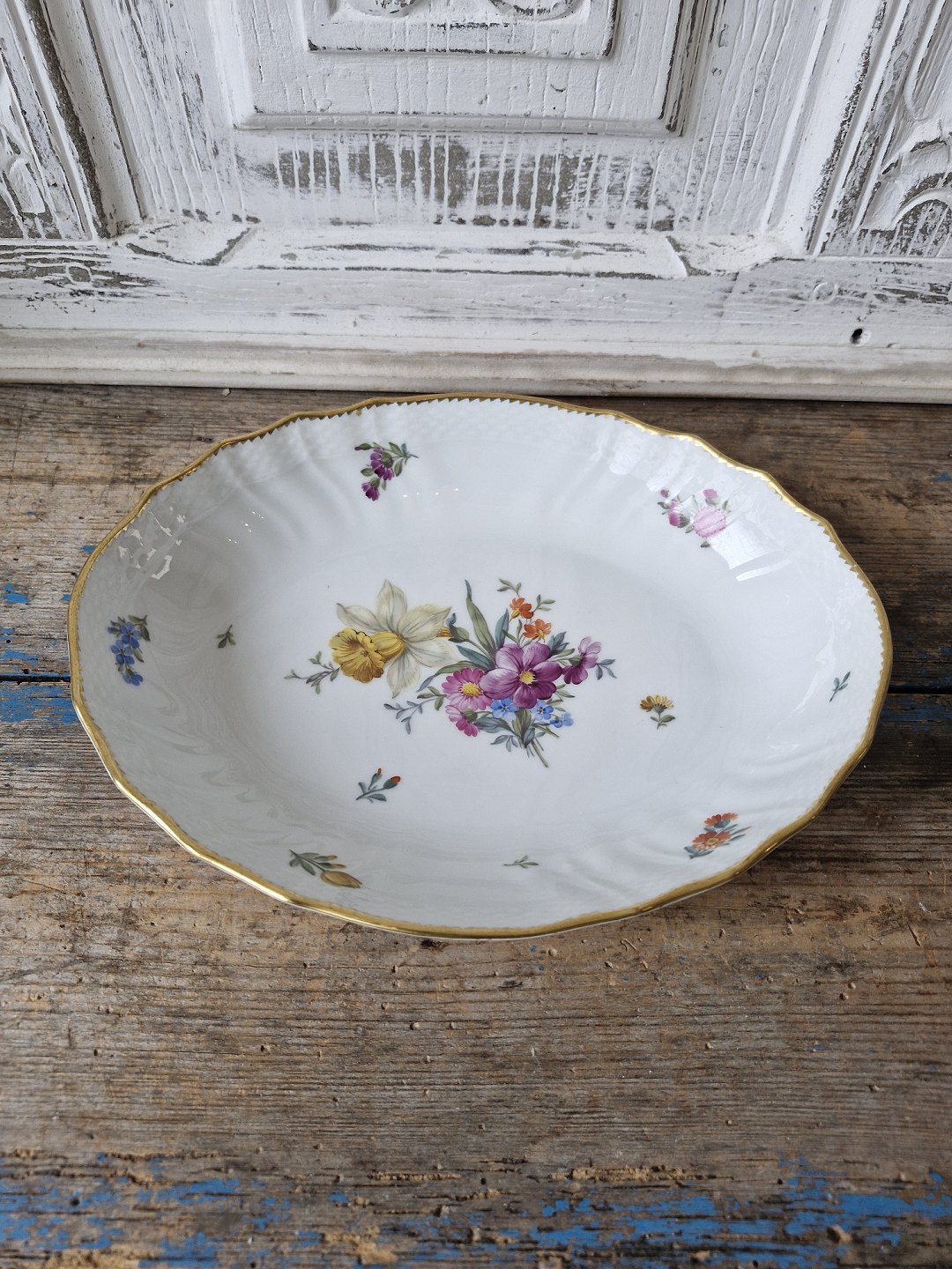 Royal Copenhagen Full Saxon Flower oval bowlNo. 1525, Factory first