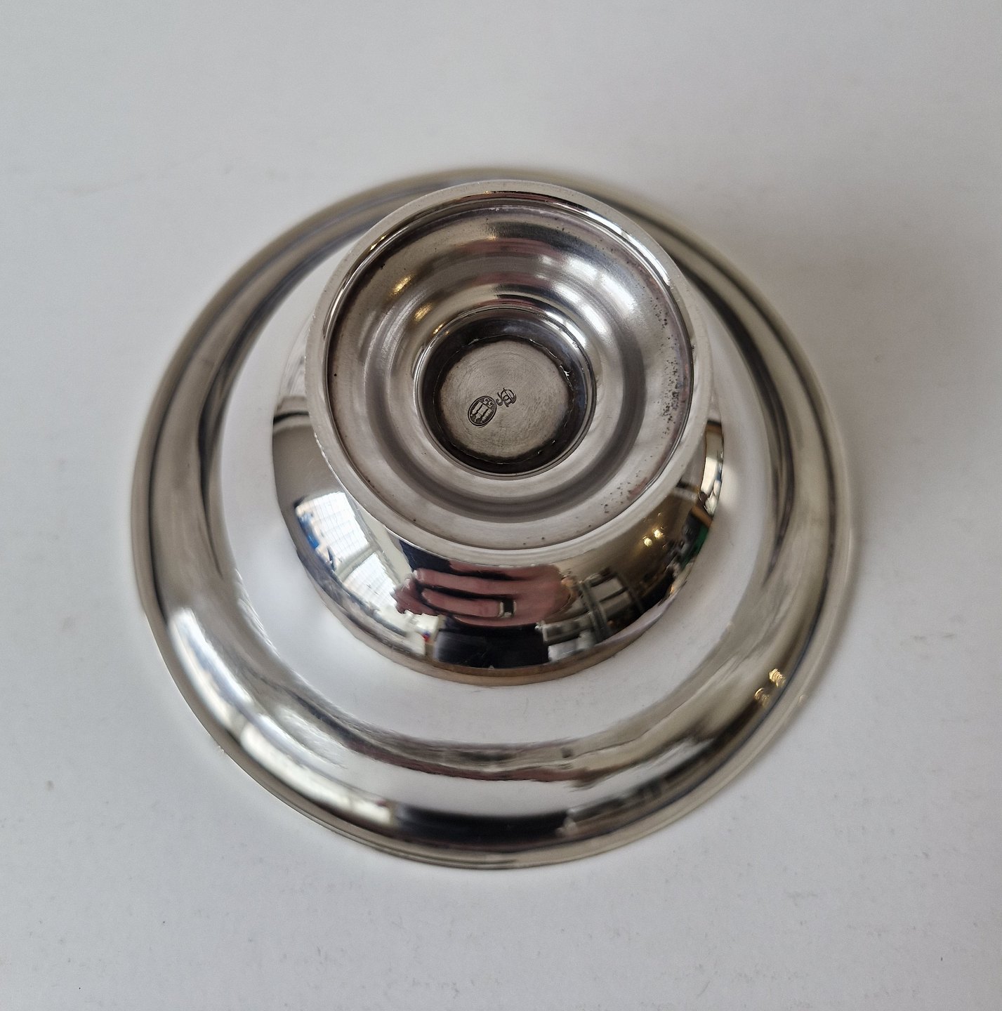 Bowl on a foot in silverStamped the three towers 1955