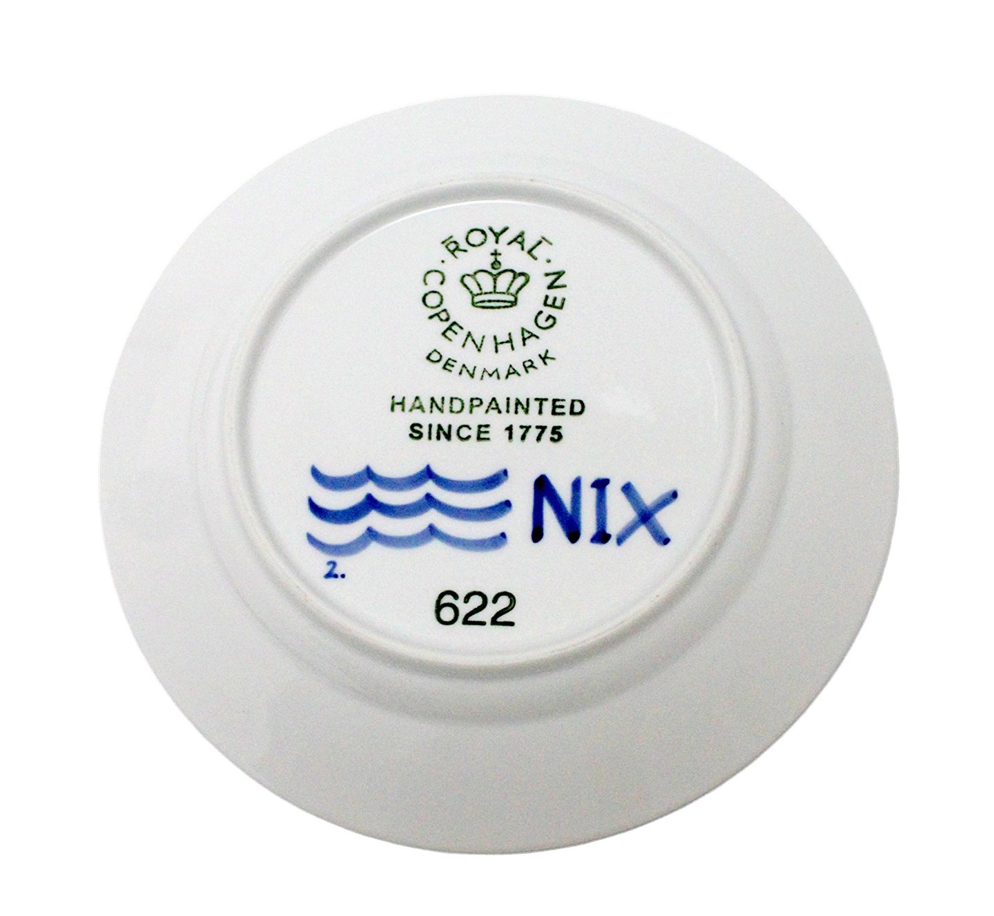 Royal Copenhagen, Sort Mega Riflet, Frokosttallerken. Produceret i årene 2005-2009 som en nyfortolkning af det klassike Musselmalede riflet. Nr. 622. Motiv 2. Diameter 22 cm. I. sortering. Lidt overfladebrugsslid. Pris: 300 kr. stk. Lager: 1