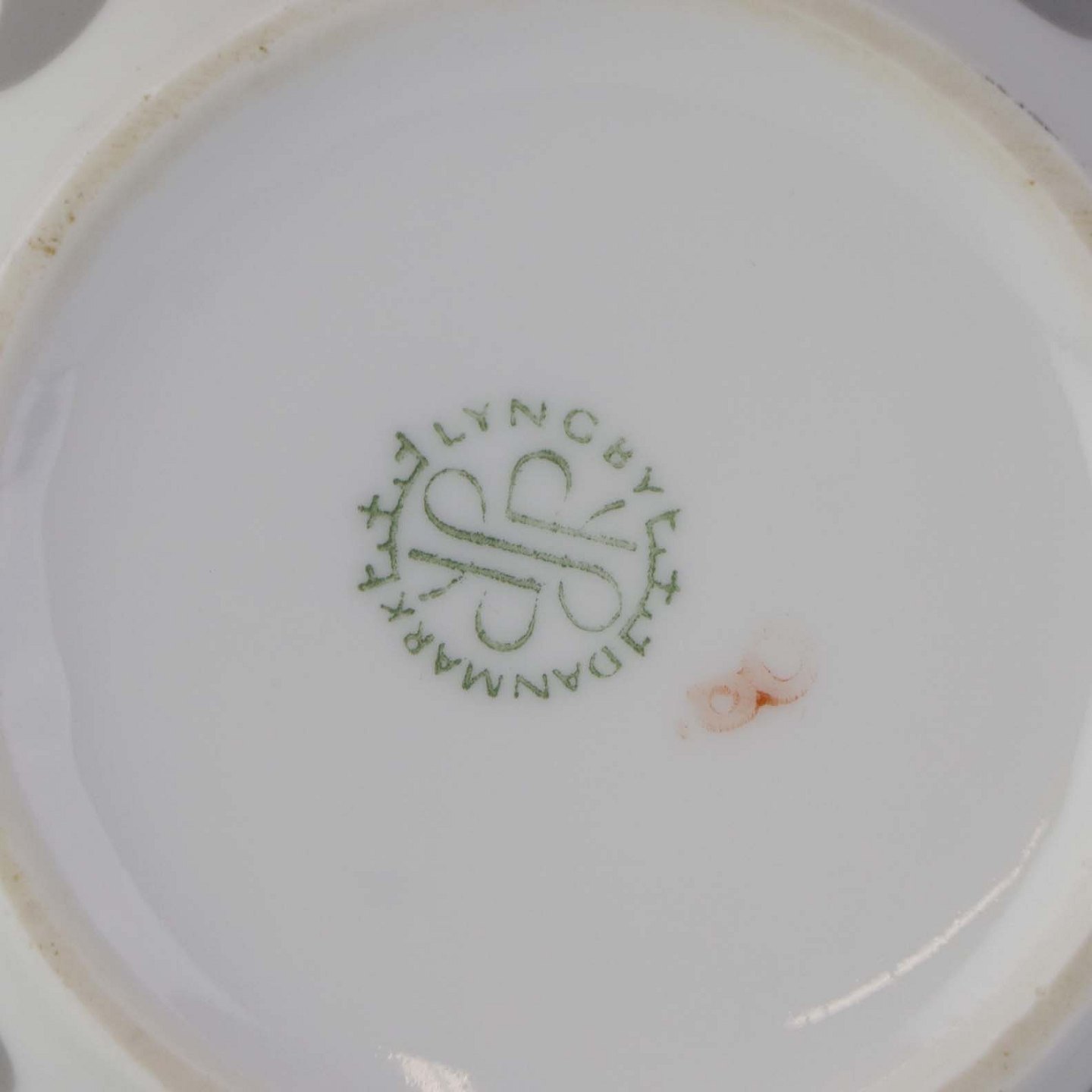 Stel produceret i perioden 1961-69 fremstillet i glat hvidt porcelæn dekoreret med blå og grå dråber.