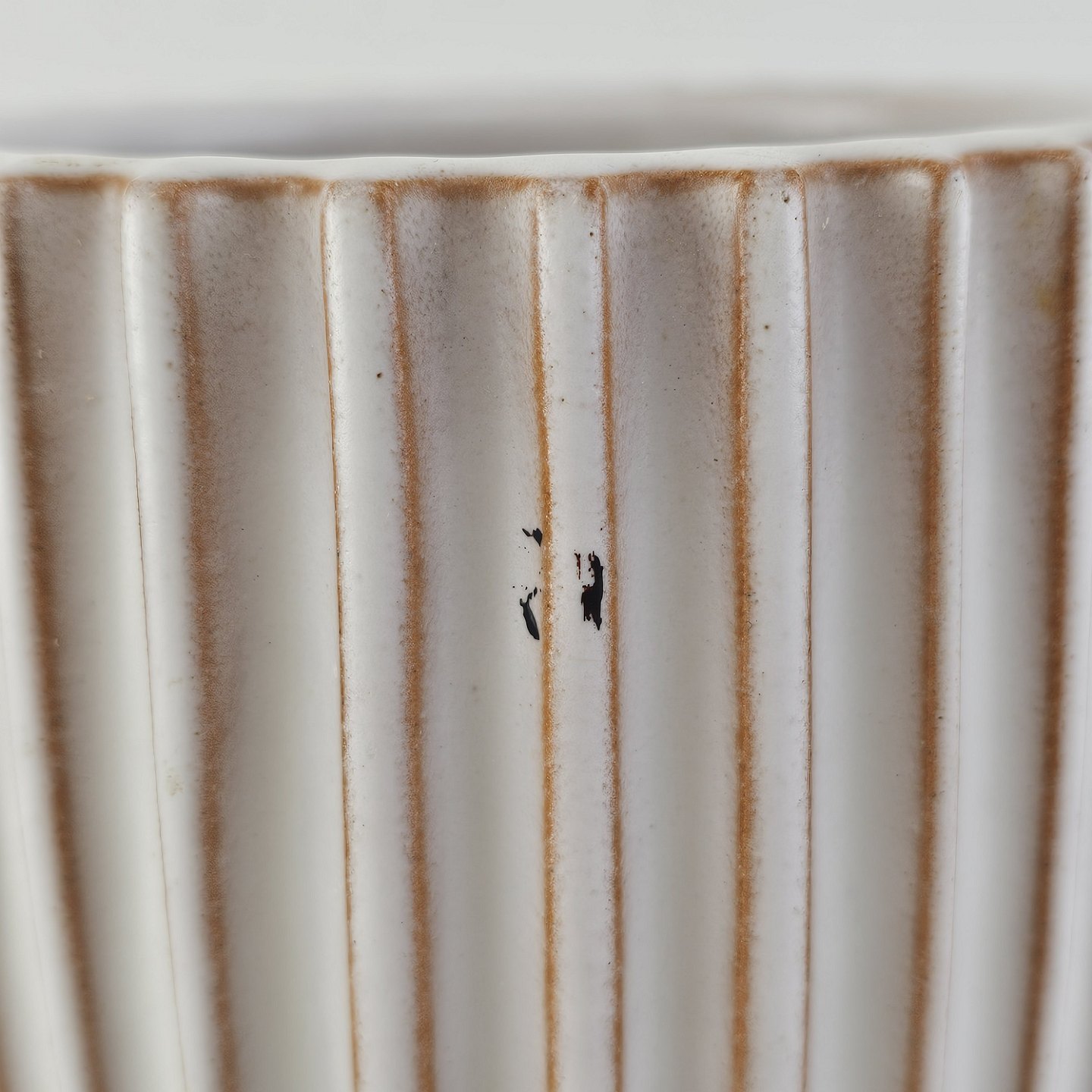 Hvid riflet vase i keramik