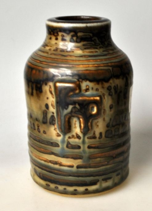 Mogensen, Jørgen (1927 - ) Denmark: Vase. Stoneware. No. 21.924. With animal reliefs. Made at Royal Copenhagen. With sung glaze. H.: 16 cm.First performed in June 1962.