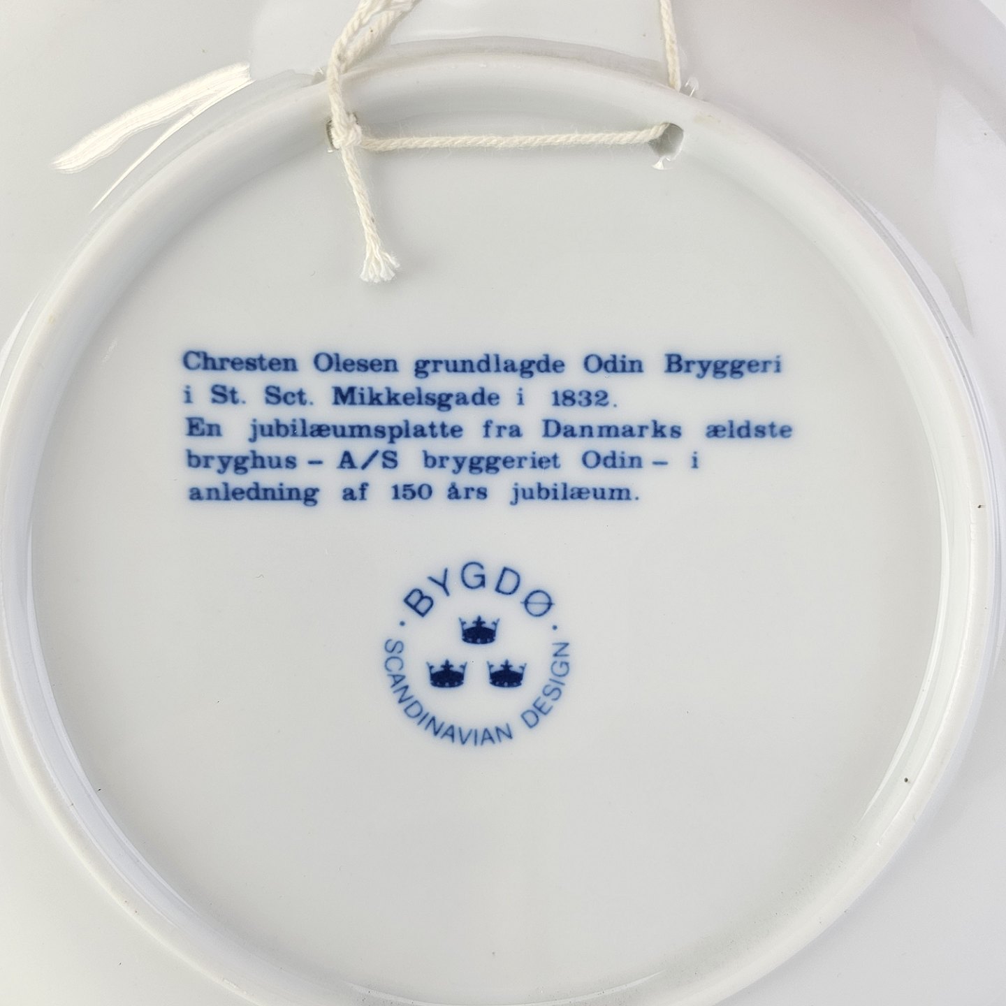 Mindeplatte i porcelæn for Bryggeriet Odins 150-års jubilæumProduceret i 1982
