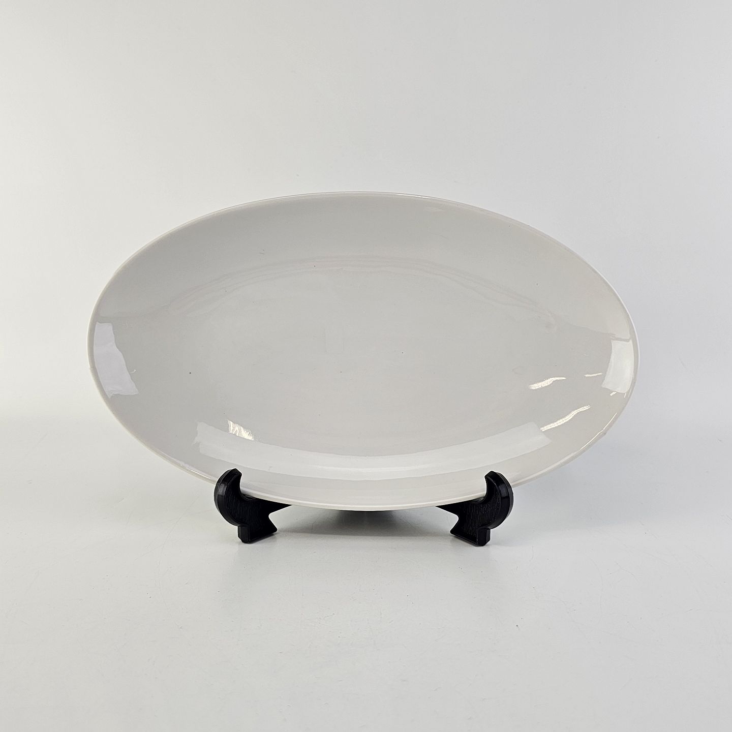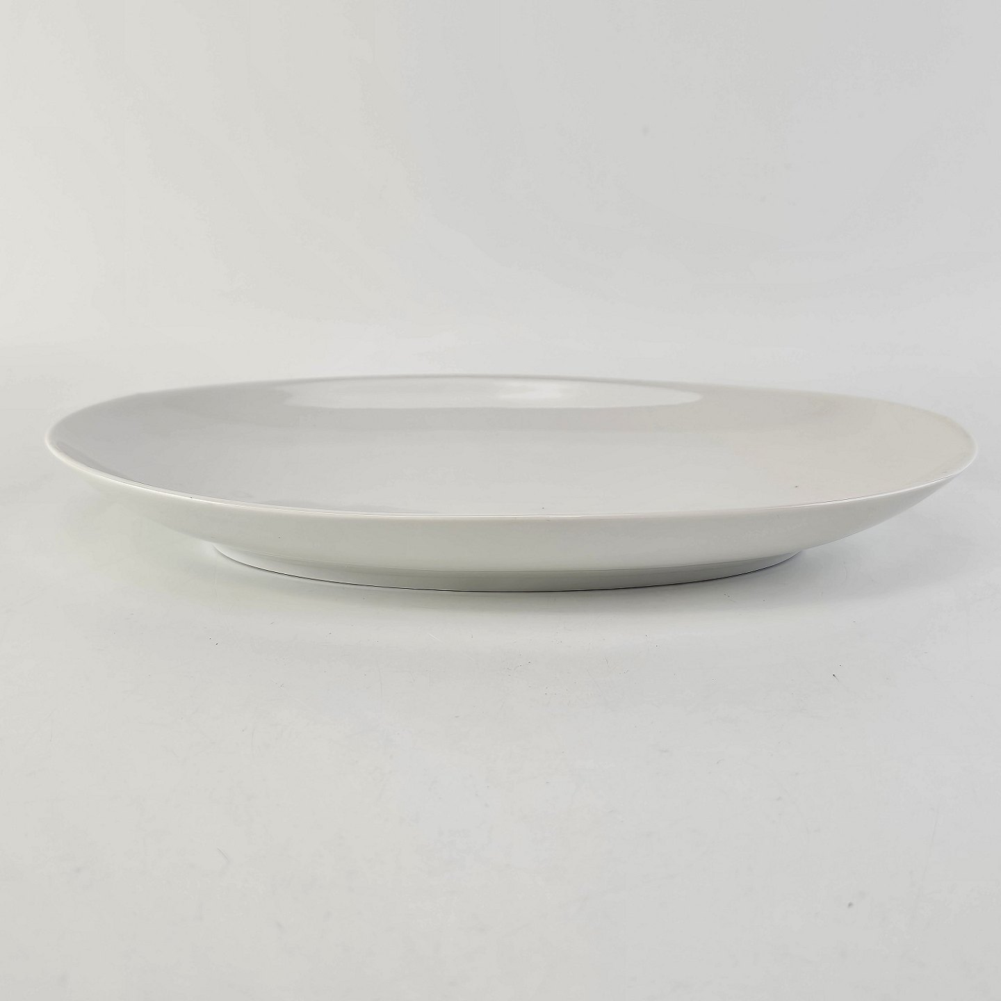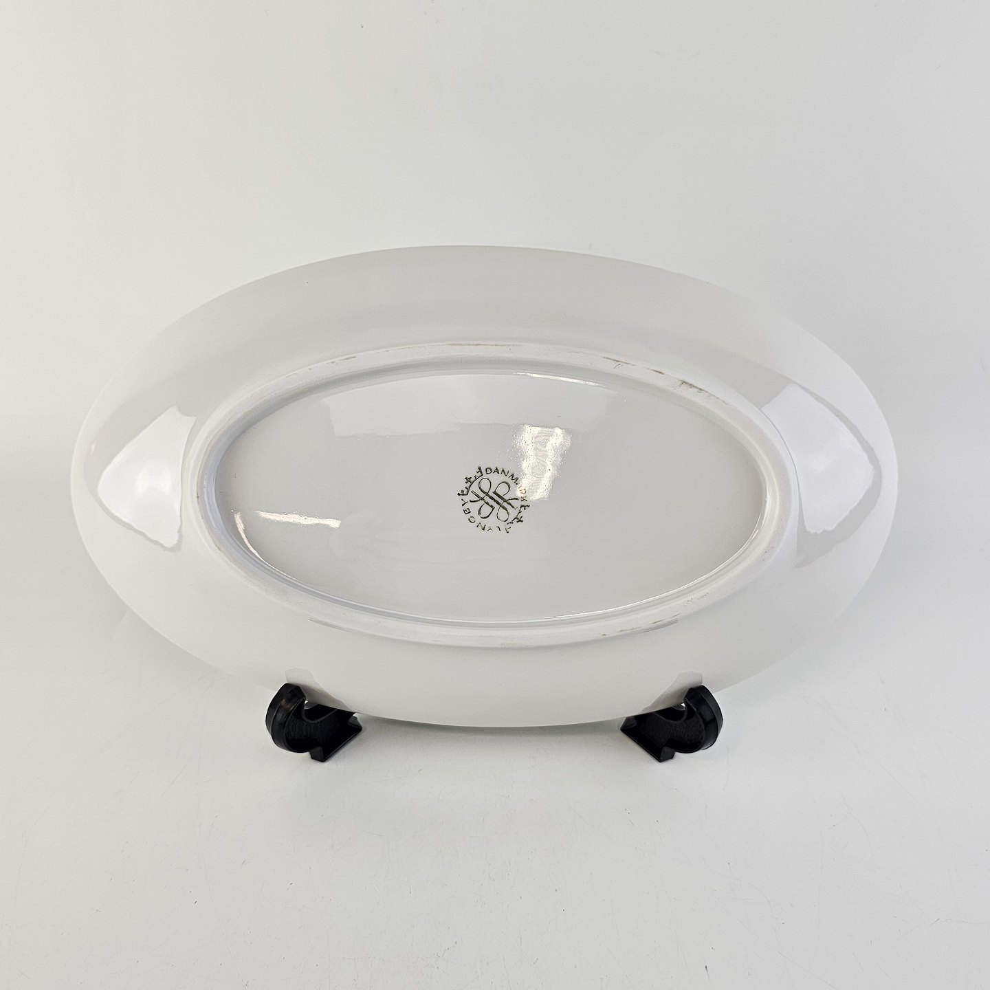 Lille ovalt fad i porcelæn fra stellet Hvid GlasurfarvetProducent Porcelænsfabrikken Danmark, Lyngby