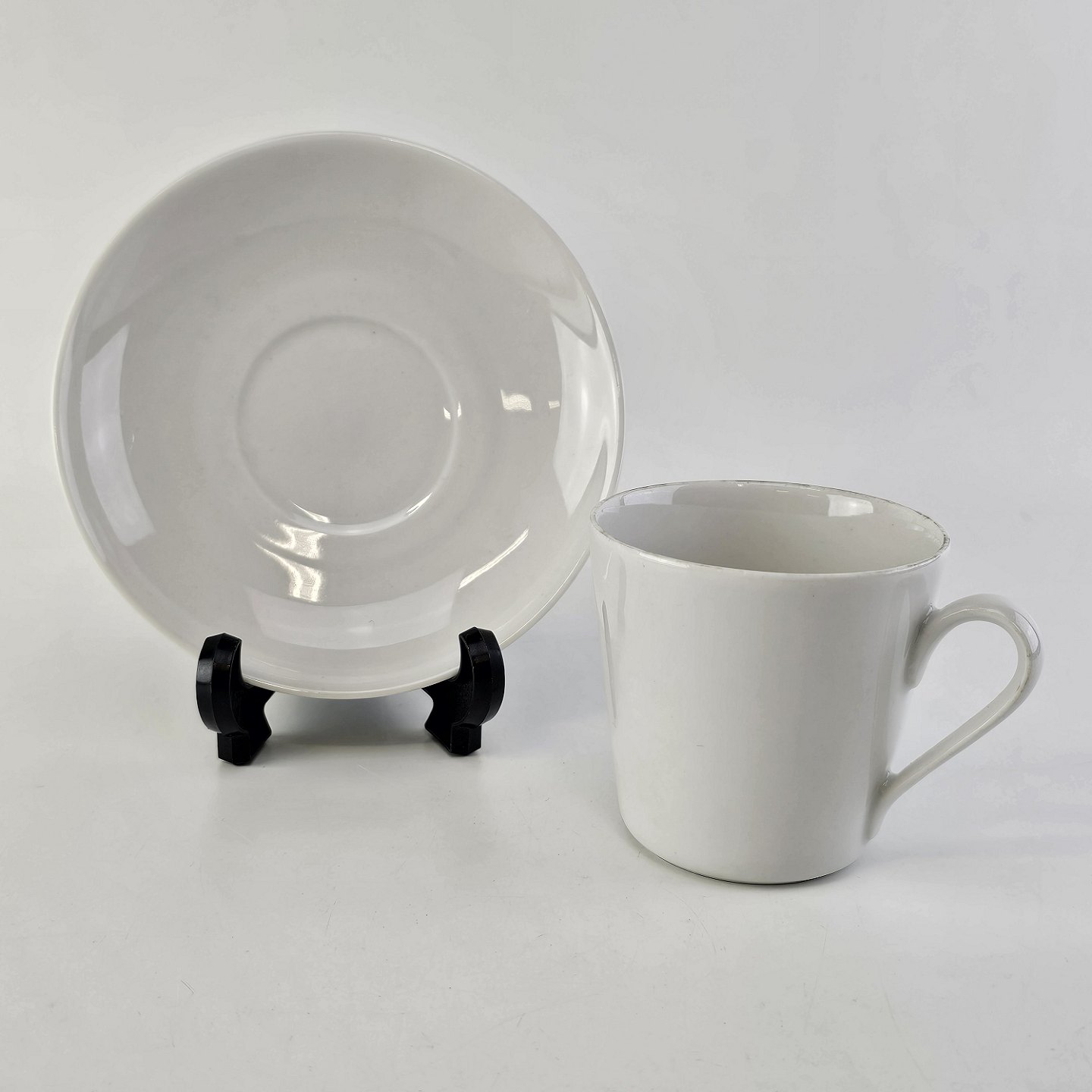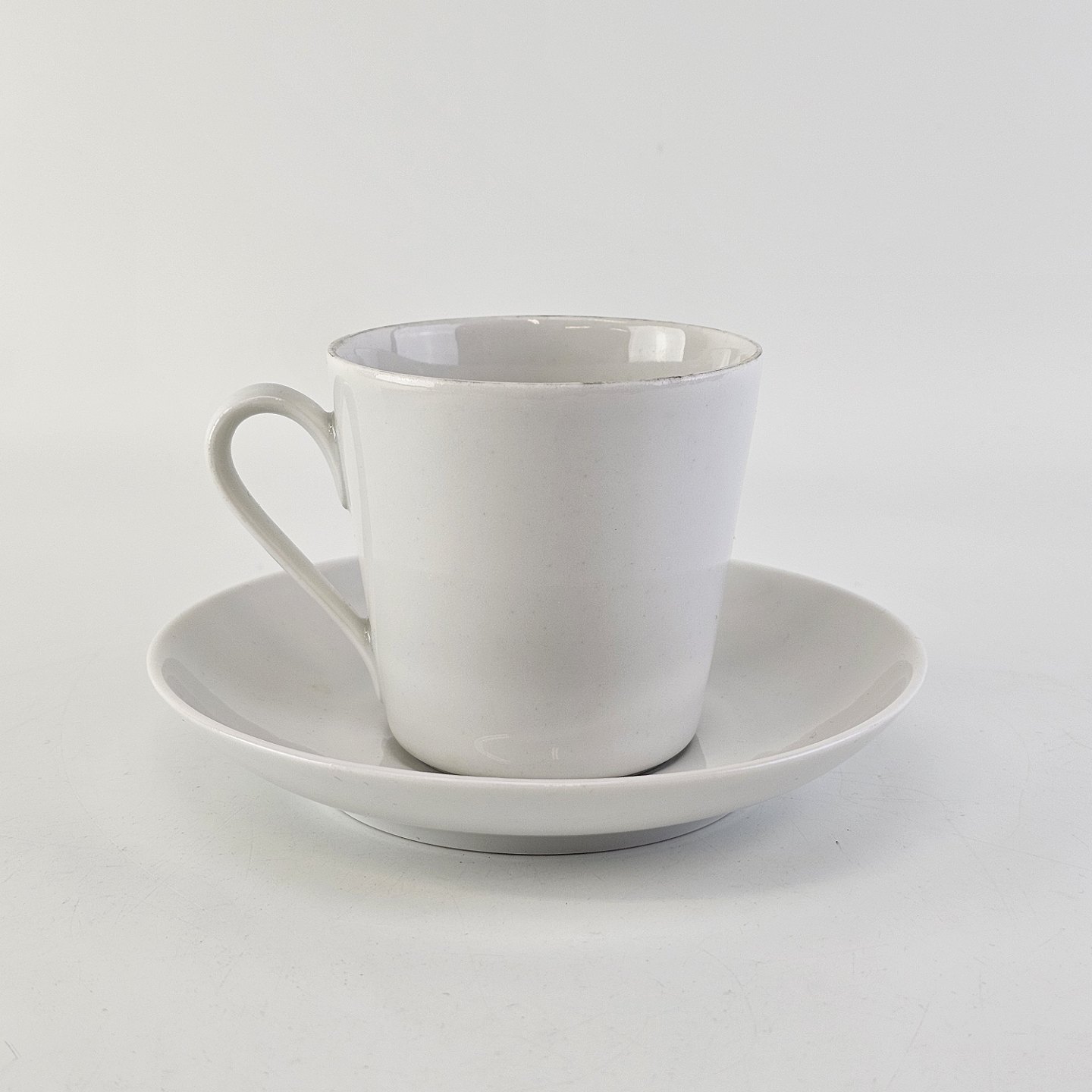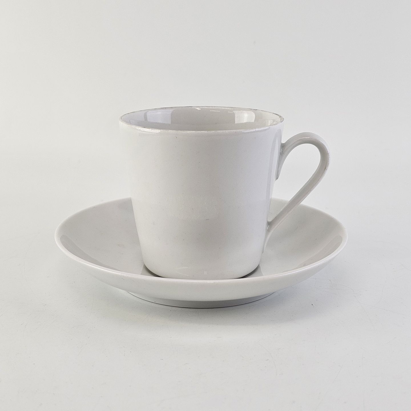 Kop med underkop i porcelæn fra stellet Hvid GlasurfarvetProducent Porcelænsfabrikken Danmark, Lyngby