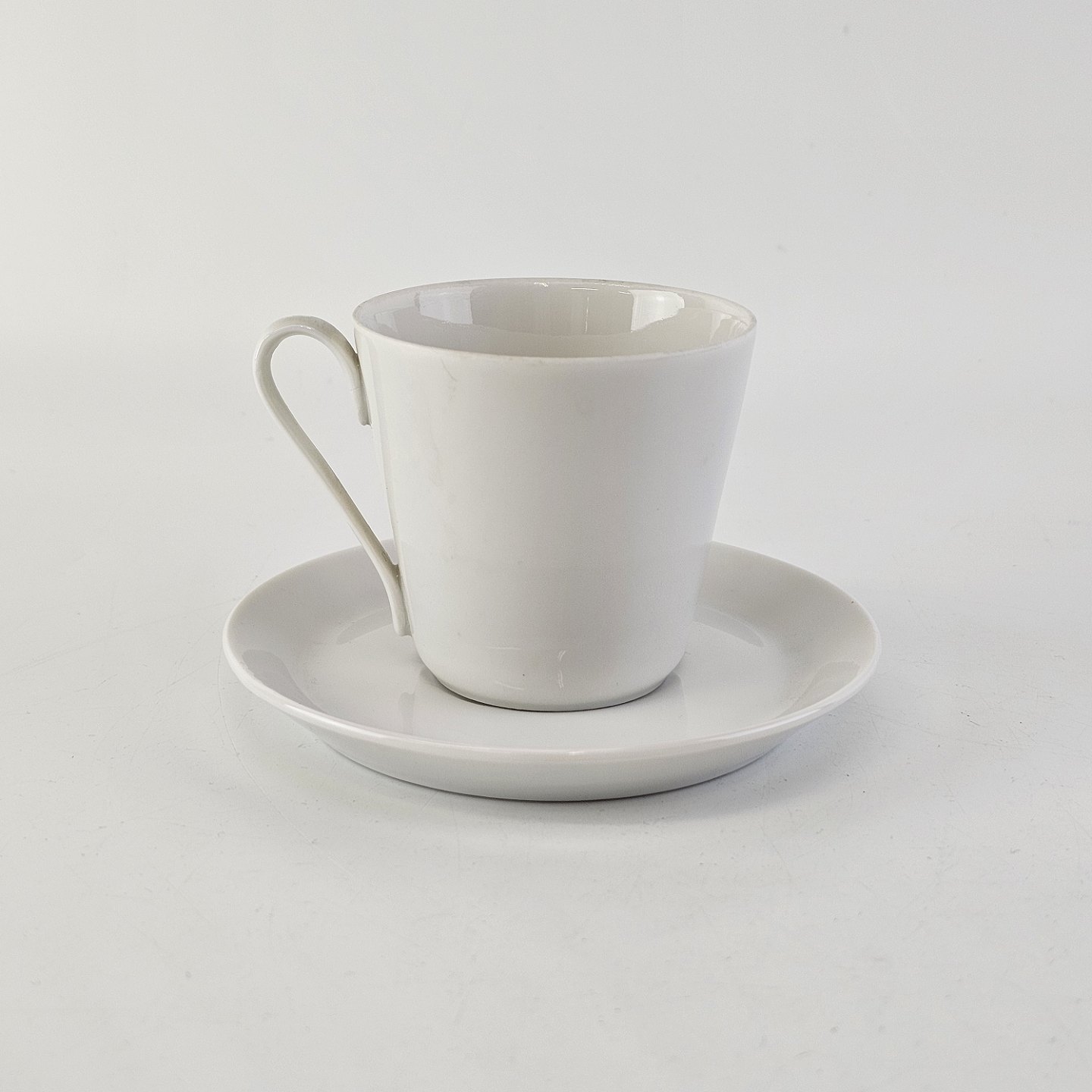 Mokkakop med underkop i porcelæn fra stellet Hvid GlasurfarvetProducent Porcelænsfabrikken Danmark, Lyngby