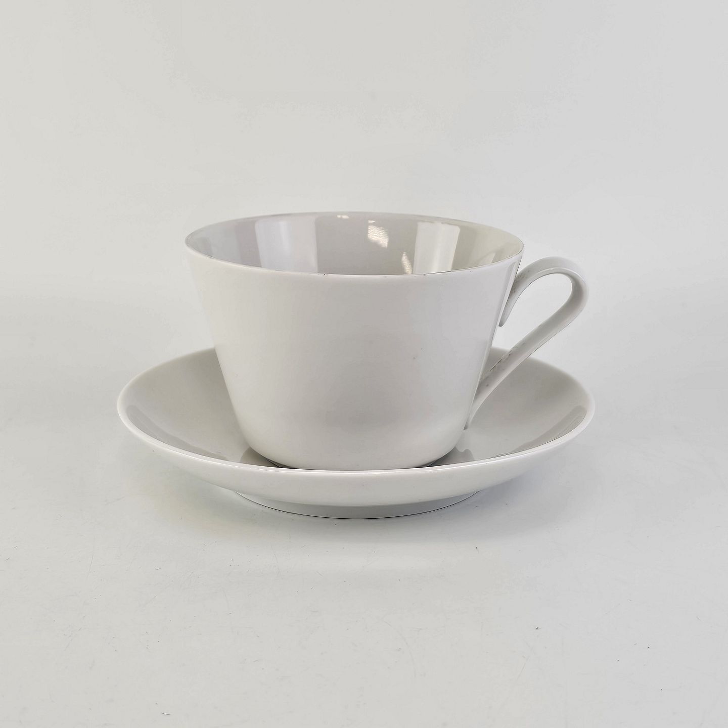 Kaffekop med underkop i porcelæn fra stellet Hvid GlasurfarvetProducent Porcelænsfabrikken Danmark, Lyngby