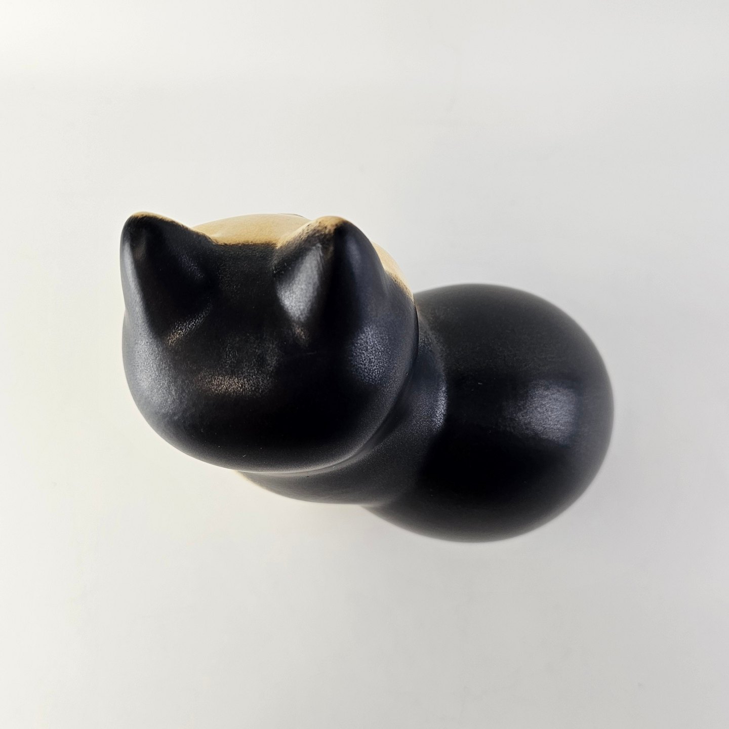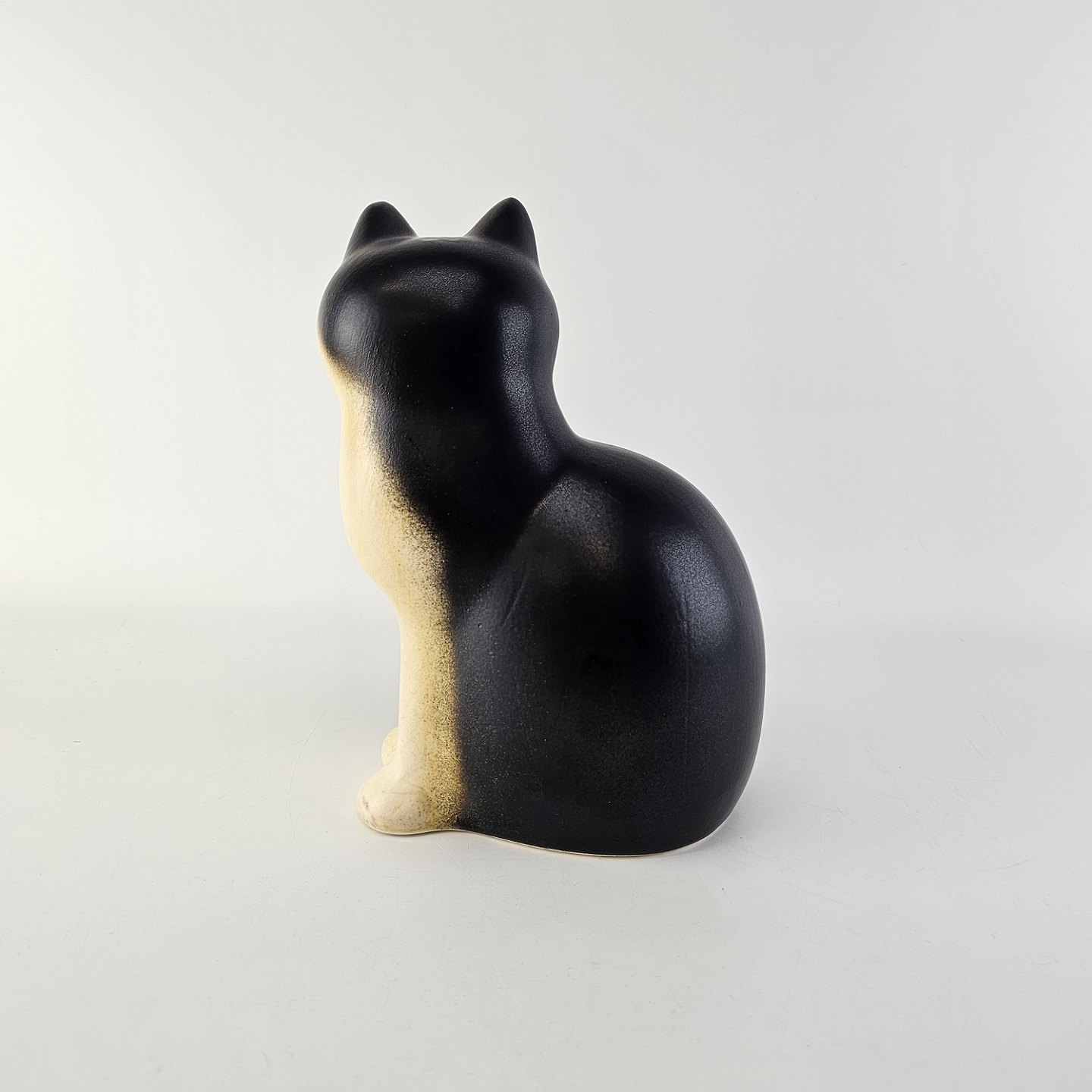 Måns figur i glaseret stentøj med motiv af en katDesign Lisa Larson