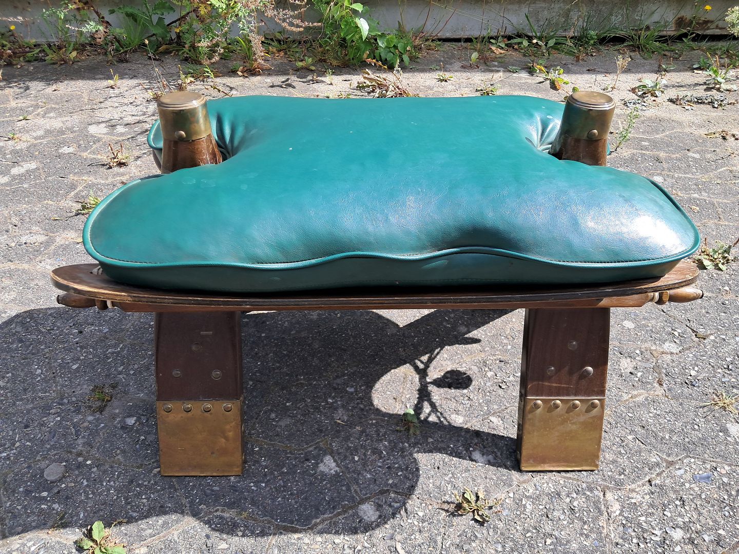 Skammel med læderhynde, fra 1980erne.Den har brugsspor.