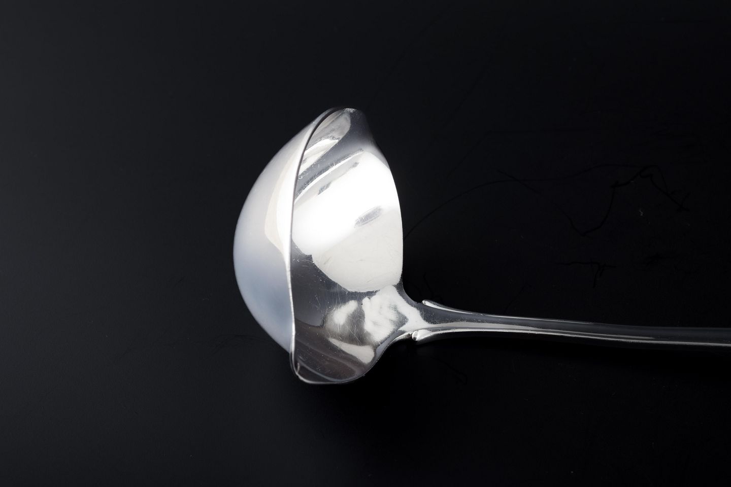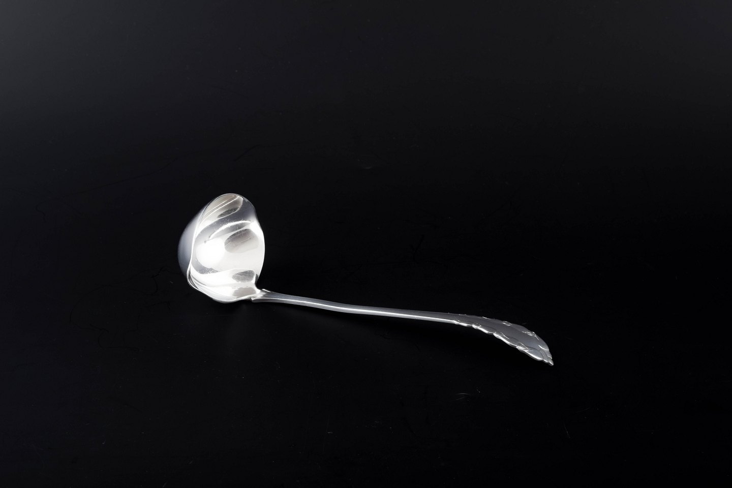 Georg Jensen, Danmark, ca. 1915–1919Sauceske i mønsteret "Liljekonval" (Lily of the Valley). Blankpoleret sterling sølv, elegant skaftafslutning med diskret blomster- og bladmotiv.