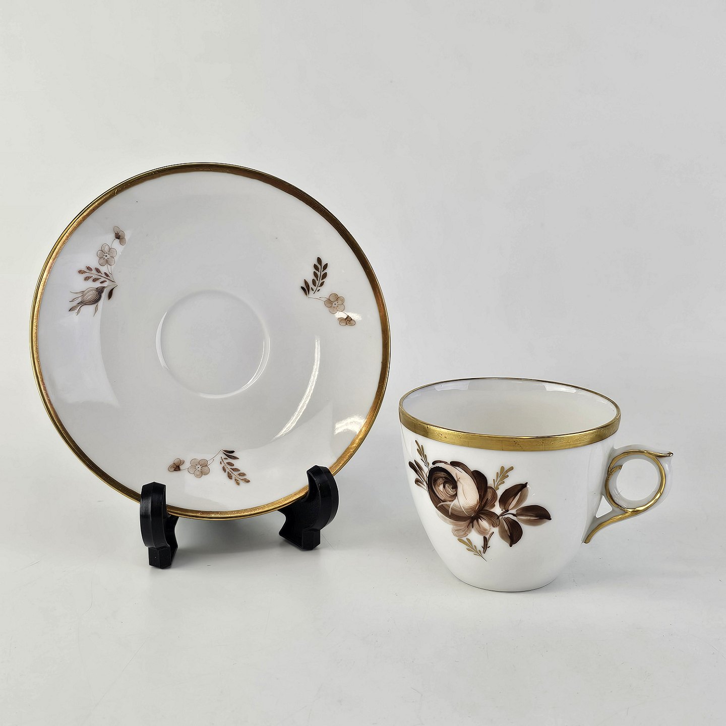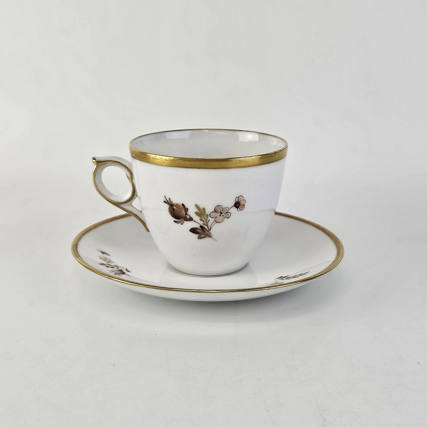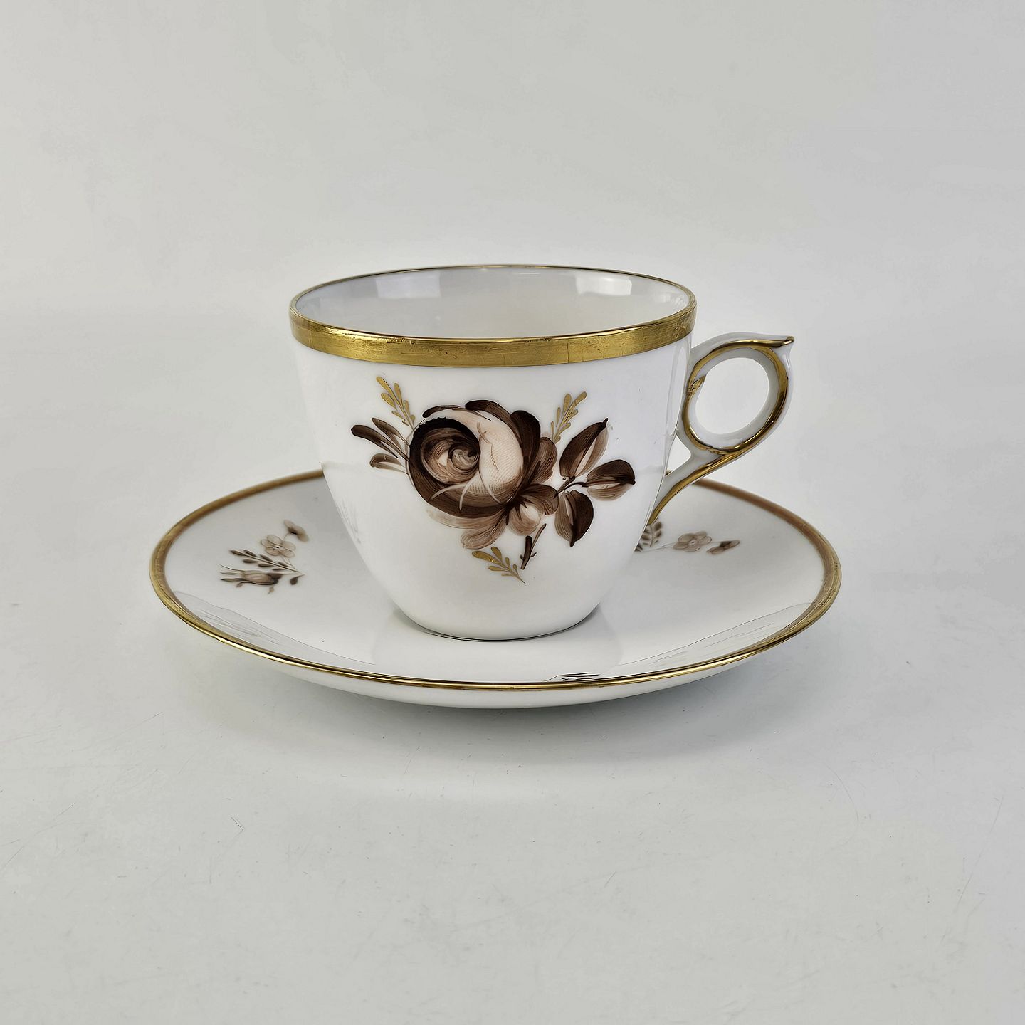 Kop med underkop i porcelæn fra stellet Brun RoseNr. 688/9852