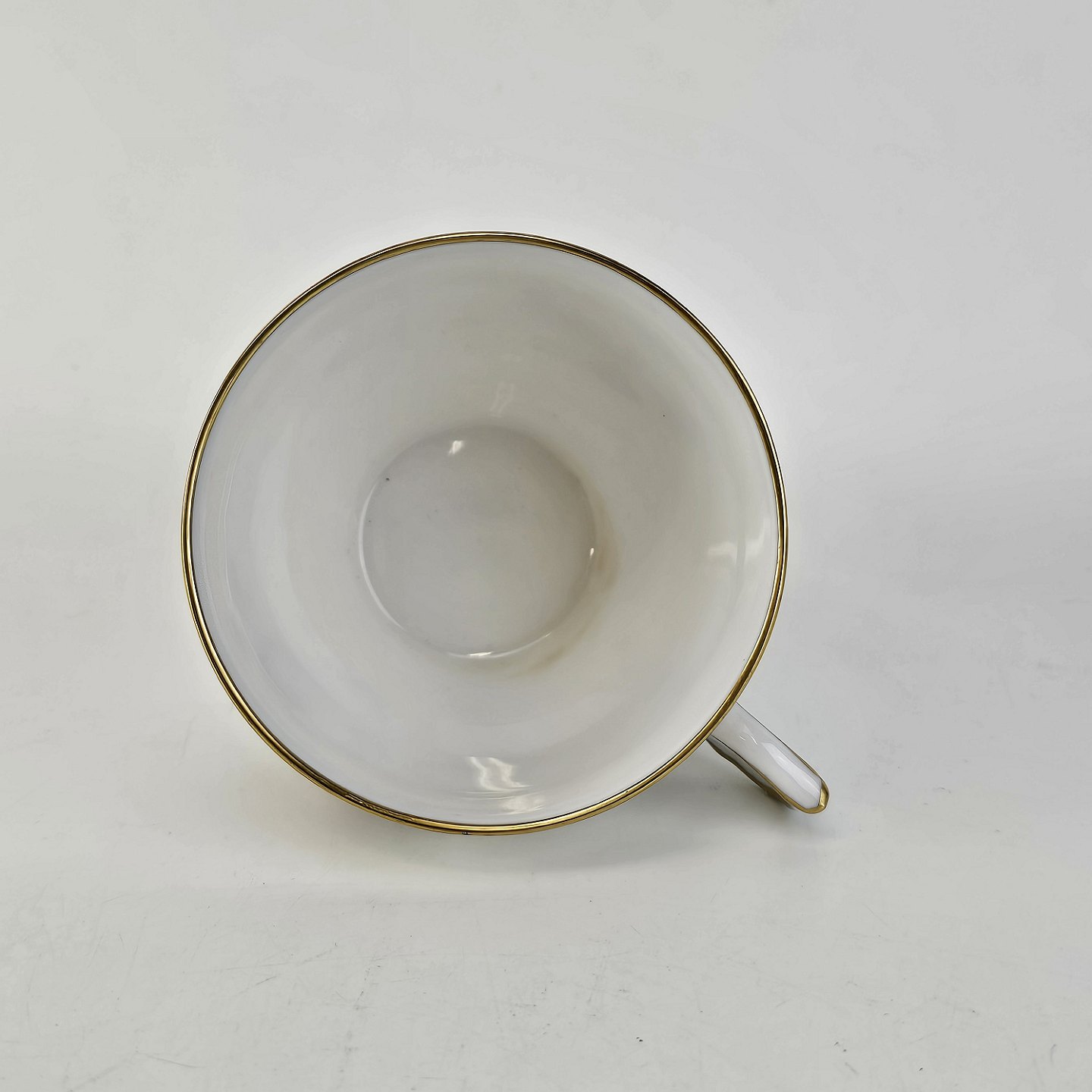 Stel i glat hvidt porcelæn dekoreret med brune roser og guldbort