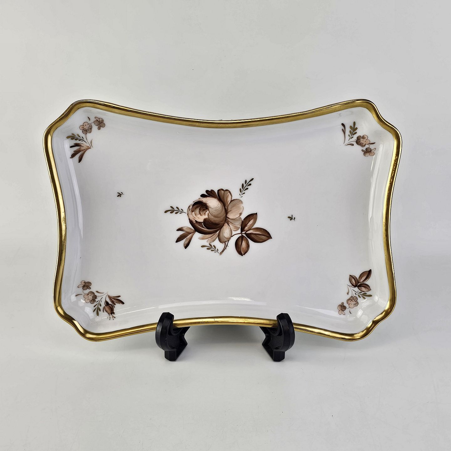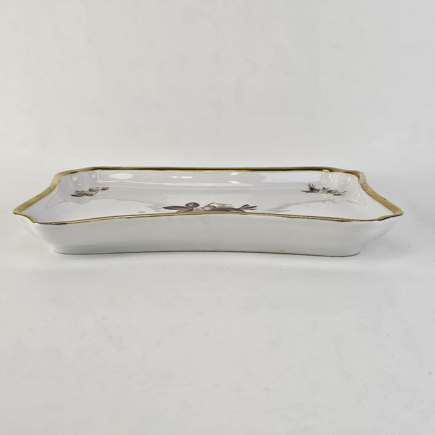 Rektangulært fad i porcelæn fra stellet Brun RoseProducent Royal Copenhagen