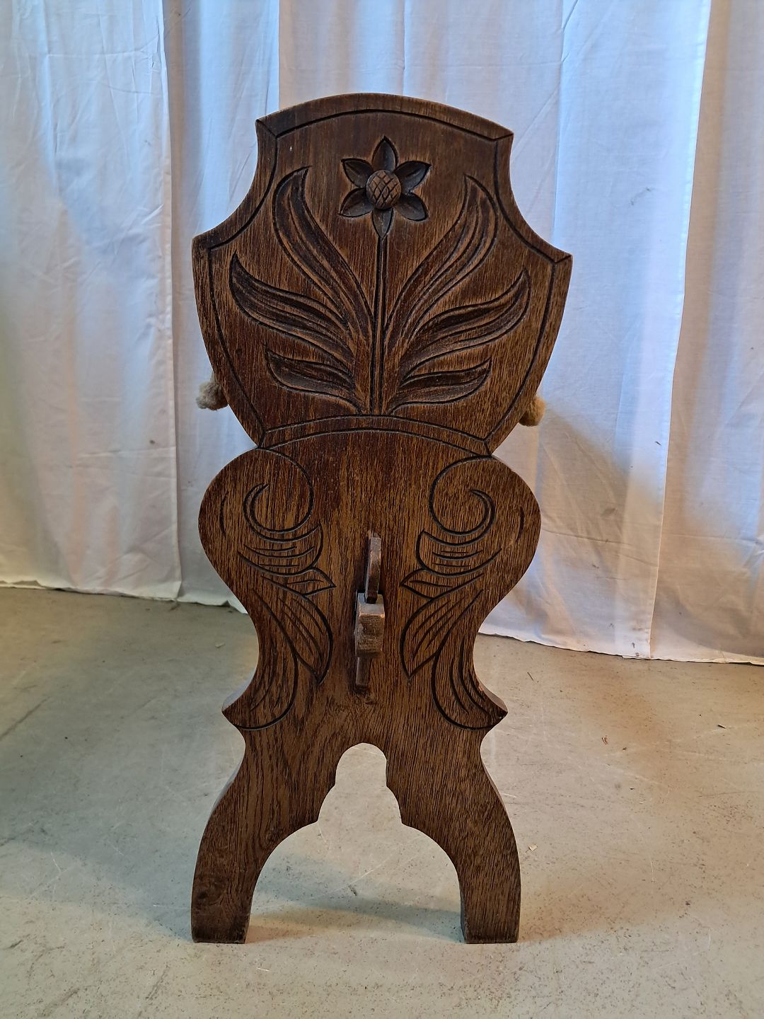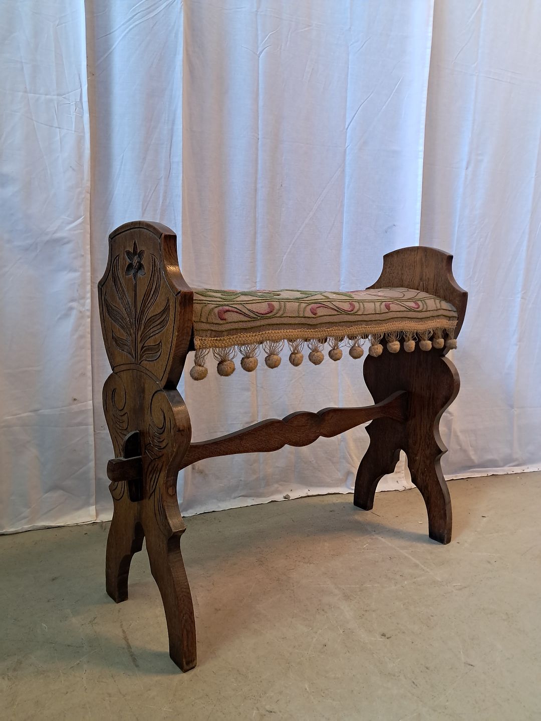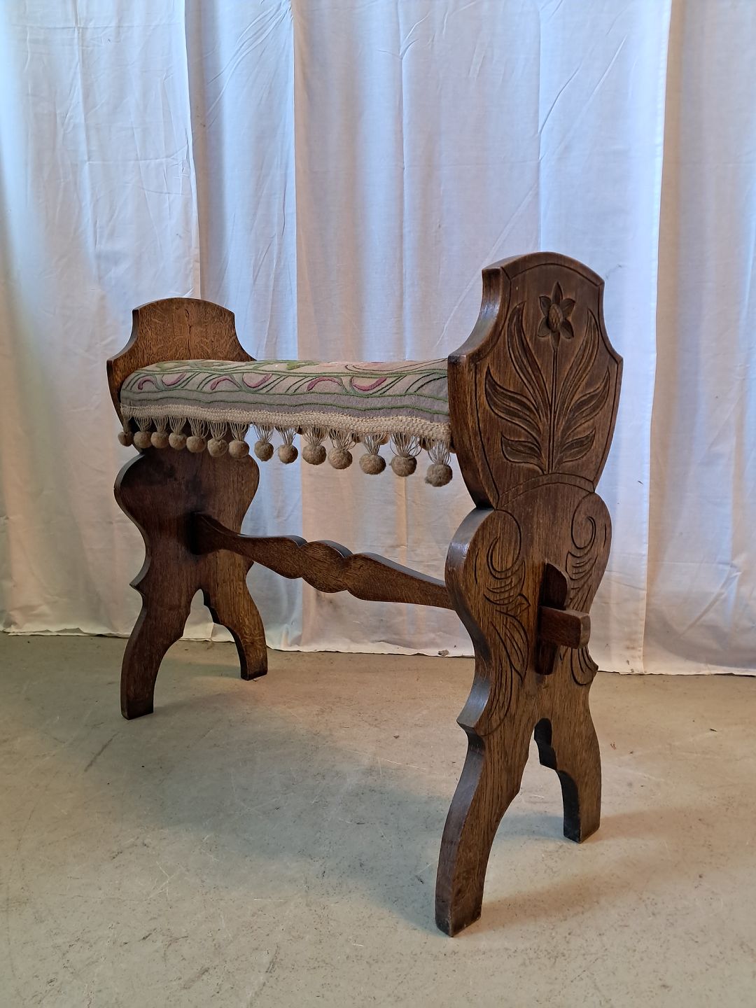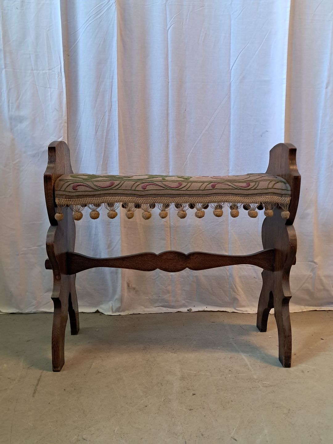 Lille bænk i massivt egetræ, fra 1920erne.Den har brugsspor.