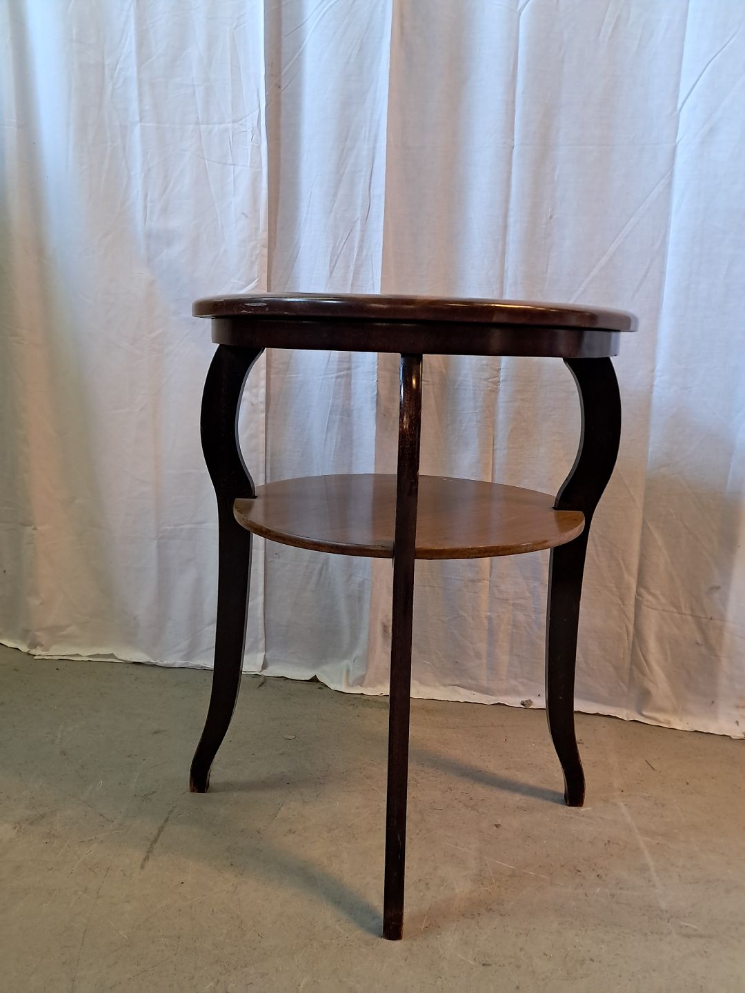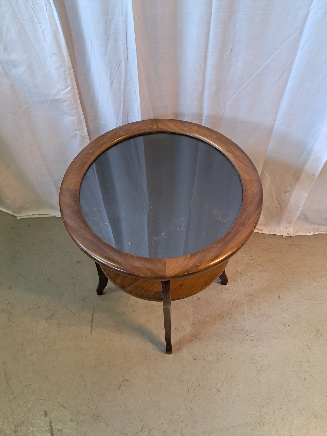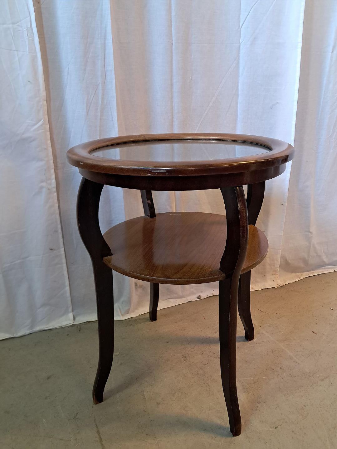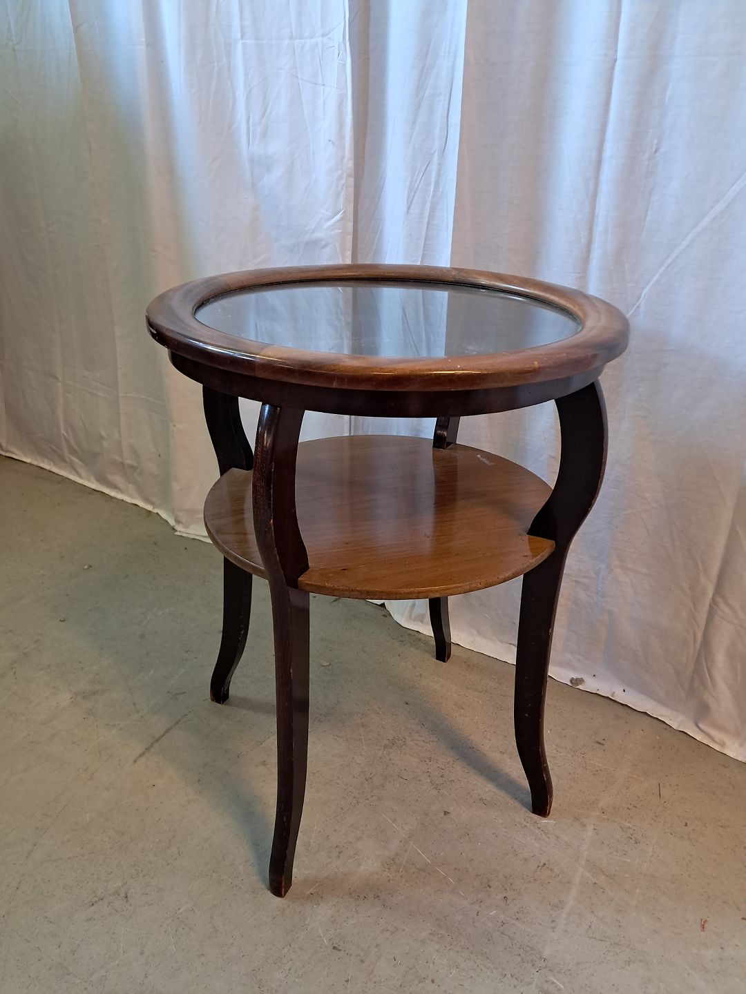 Sidebord i mahogni og bøgetræ med glasplade, fra 1920erne.Det har brugsspor.