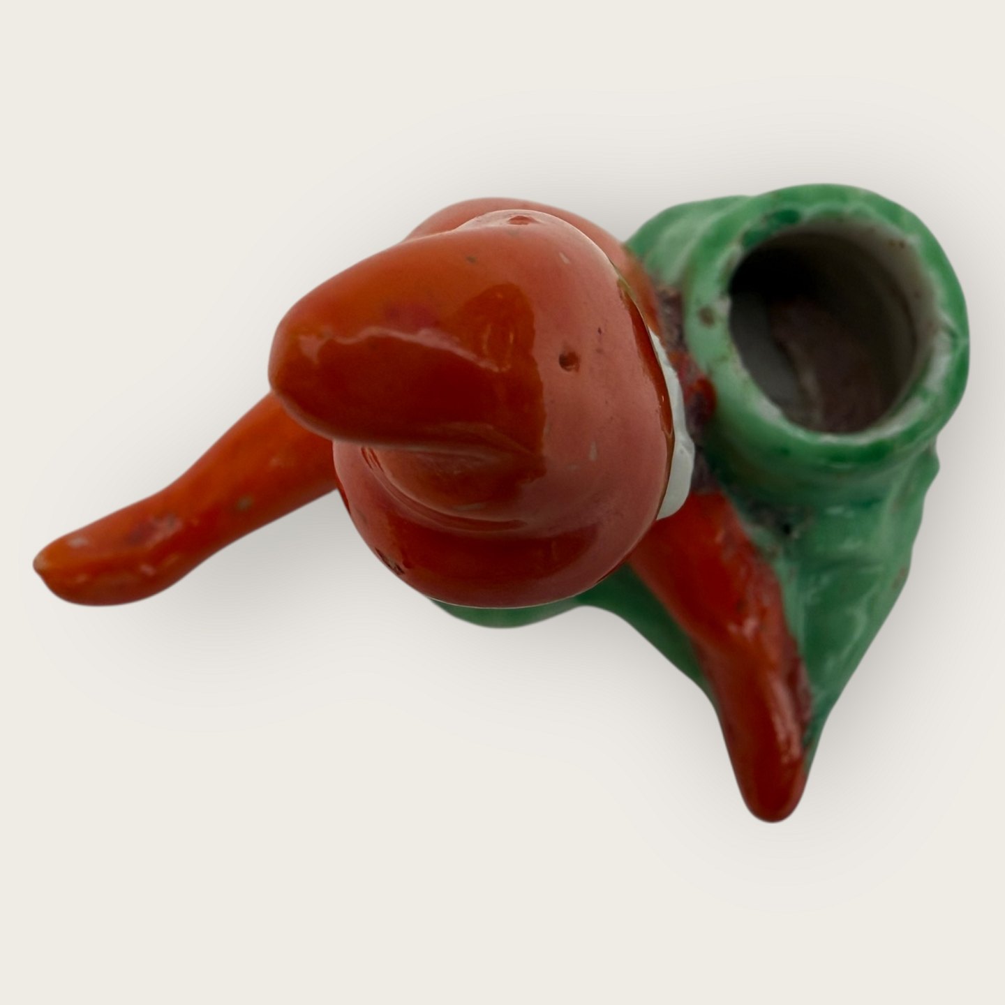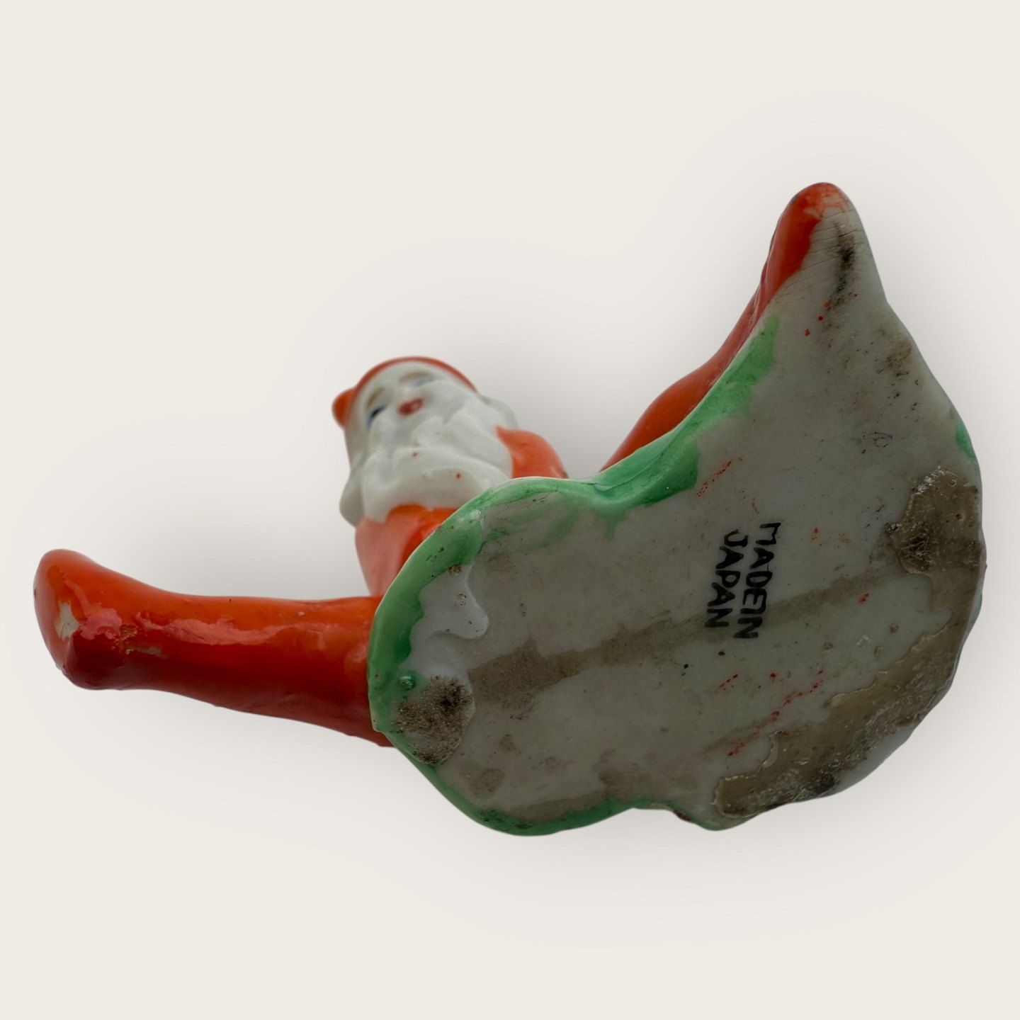 Small Japanese porcelain gnome with candlestick, Marked: Made in Japan, Approx. 6x6cm, Nice patinated conditionStock: 1