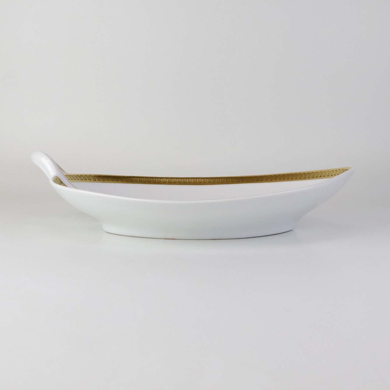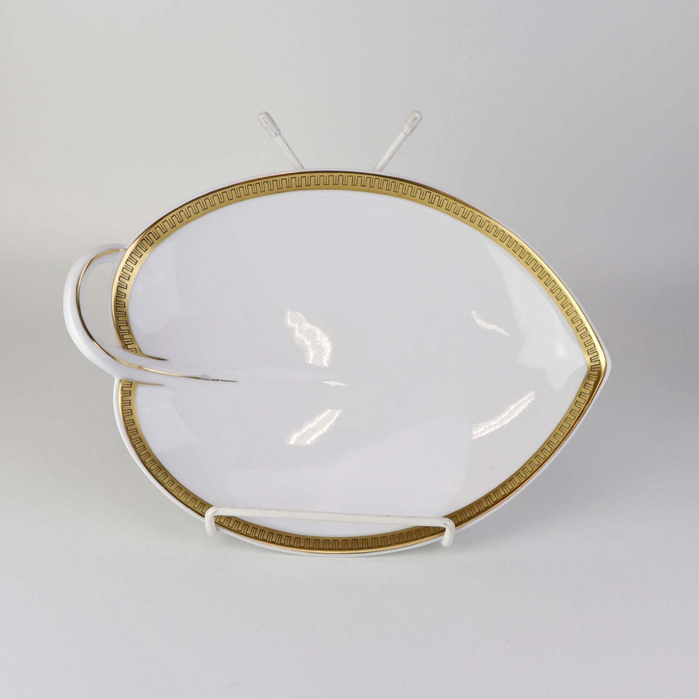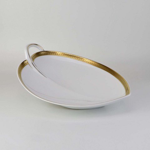 Bladformet fad med hank i porcelæn fra stellet Trend 450Producent Porcelænsfabrikken Danmark - Lyngby